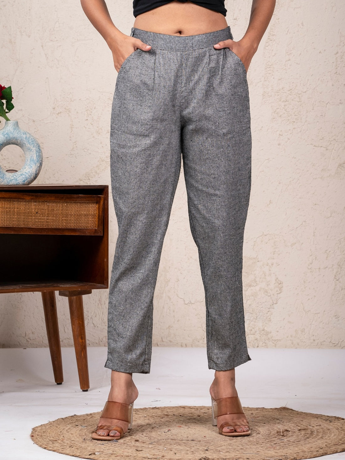 QuaClo Grey Women's Regular Fit Cotton Trousers offer the ideal fusion of comfort and style....