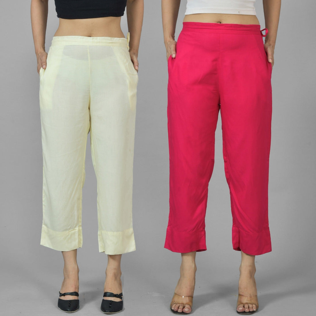 Pack Of 2 Womens Beige And Rani Pink Ankle Length Rayon Culottes Trouser Combo