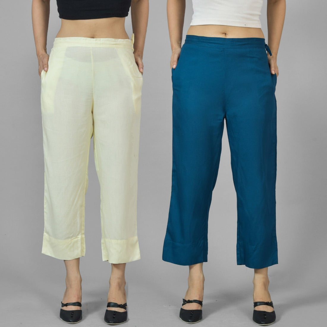 Pack Of 2 Womens Beige And Teal Blue Ankle Length Rayon Culottes Trouser Combo