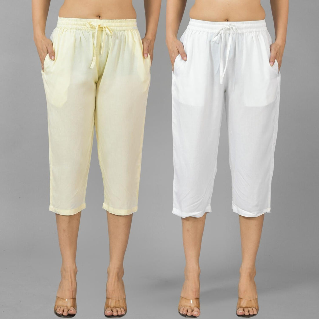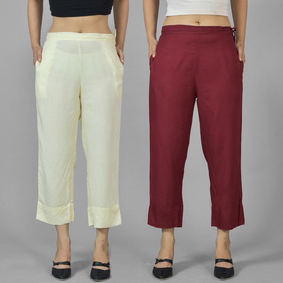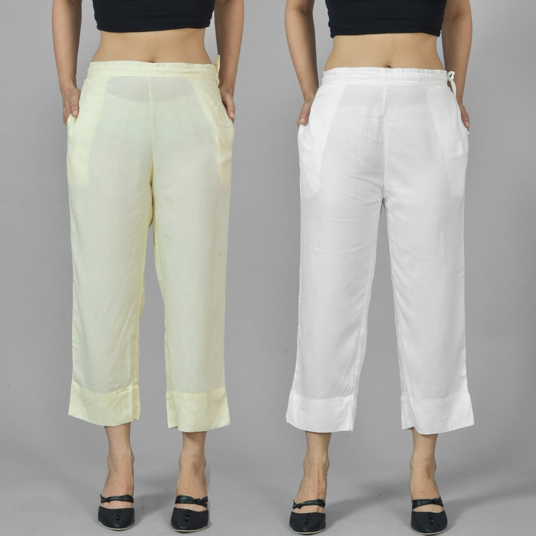 Pack Of 2 Womens Beige And White Ankle Length Rayon Culottes Trouser Combo