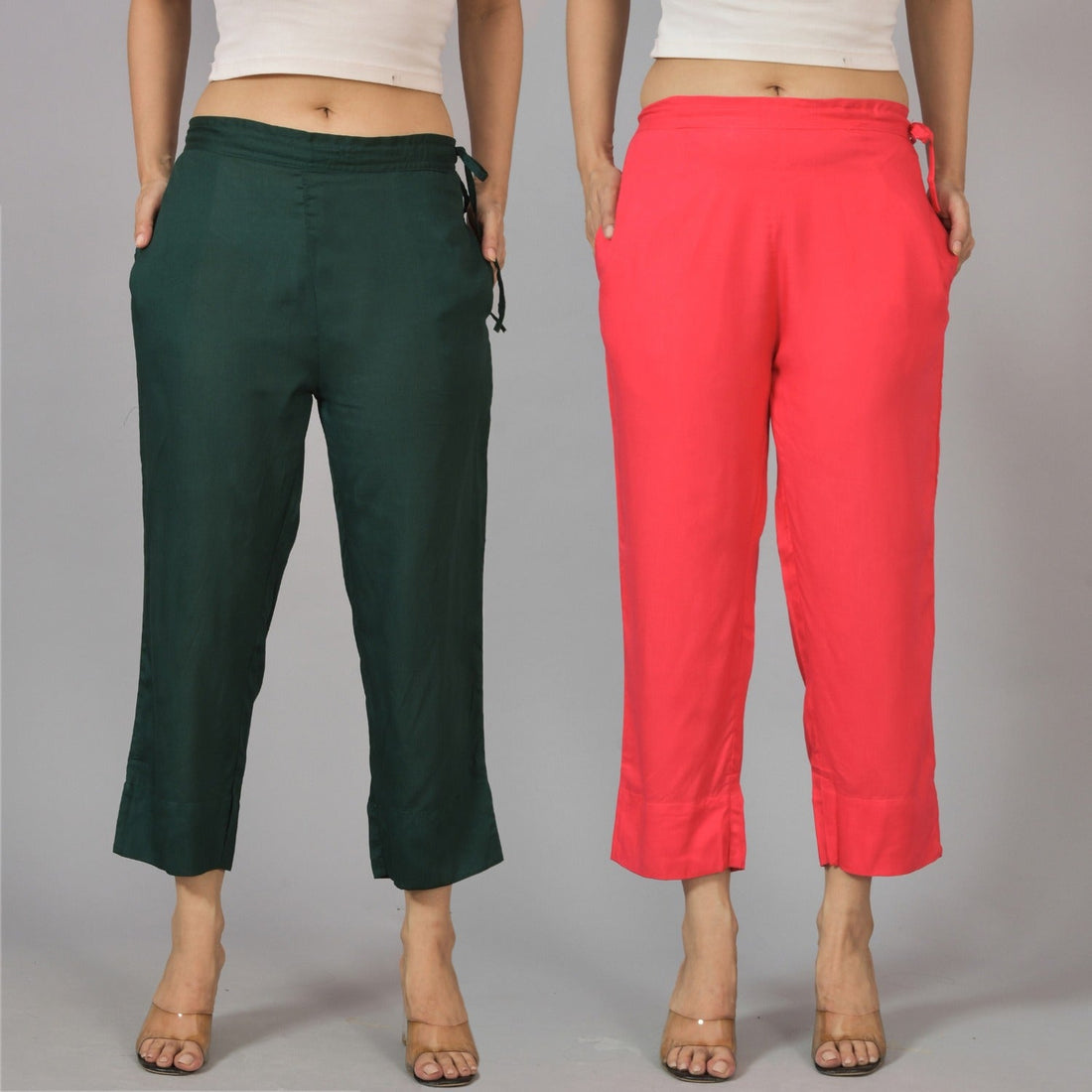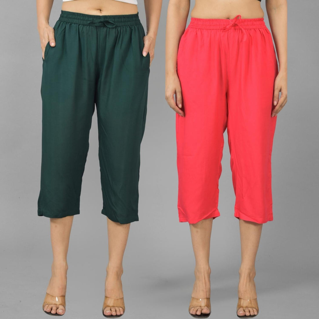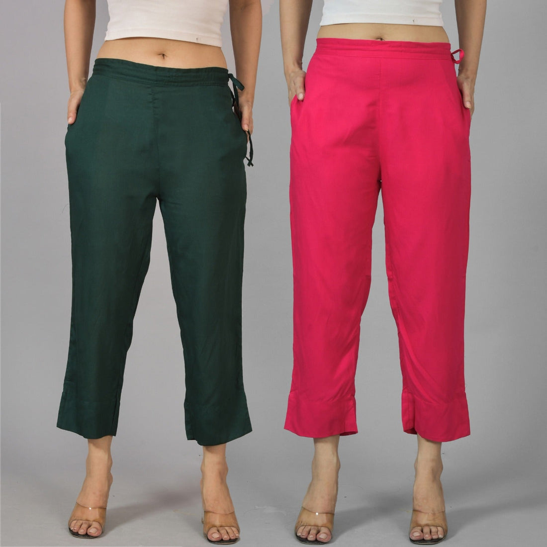 Pack Of 2 Womens Dark Green And Rani Pink Ankle Length Rayon Culottes Trouser Combo