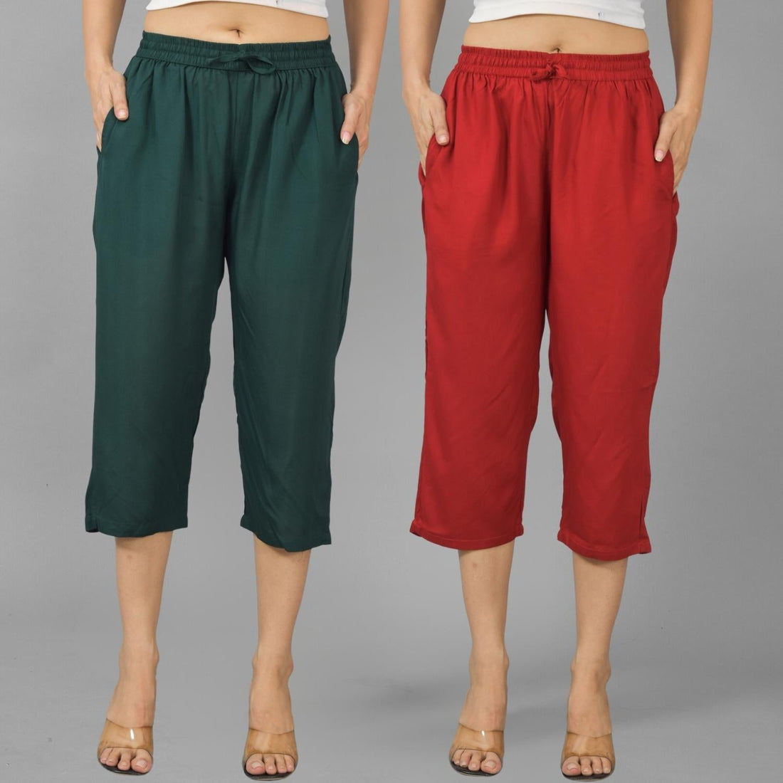 Pack Of 2 Womens Dark Green And Maroon Calf Length Rayon Culottes Trouser Combo