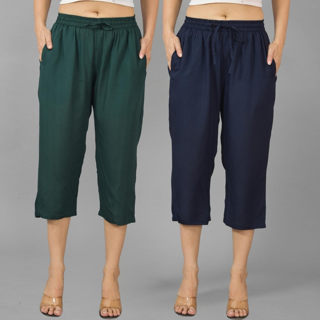 Pack Of 2 Womens Dark Green And Navy Blue Ankle Length Rayon Culottes Trouser Combo