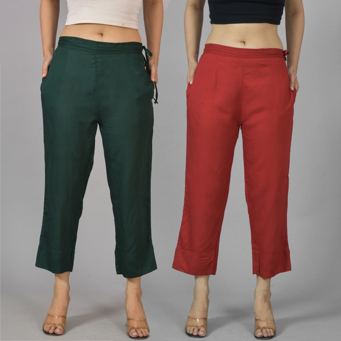 Pack Of 2 Womens Dark Green And Maroon Ankle Length Rayon Culottes Trouser Combo