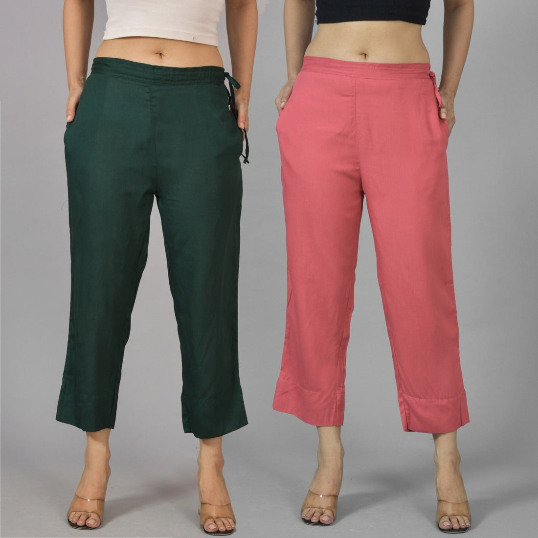 Pack Of 2 Womens Dark Green And Mauve Pink Ankle Length Rayon Culottes Trouser Combo