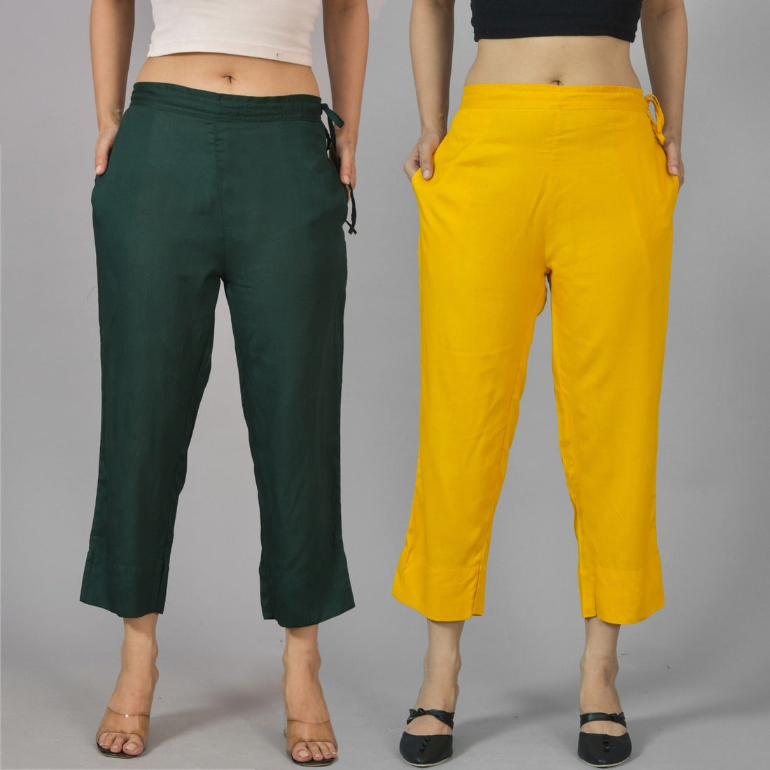 Pack Of 2 Womens Dark Green And Mustard Ankle Length Rayon Culottes Trouser Combo