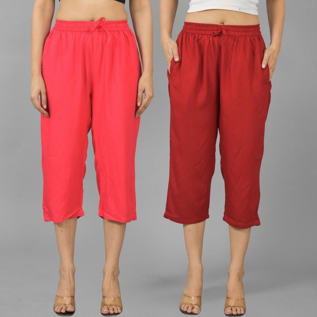 Pack Of 2 Womens Gajri And Maroon Calf Length Rayon Culottes Trouser Combo