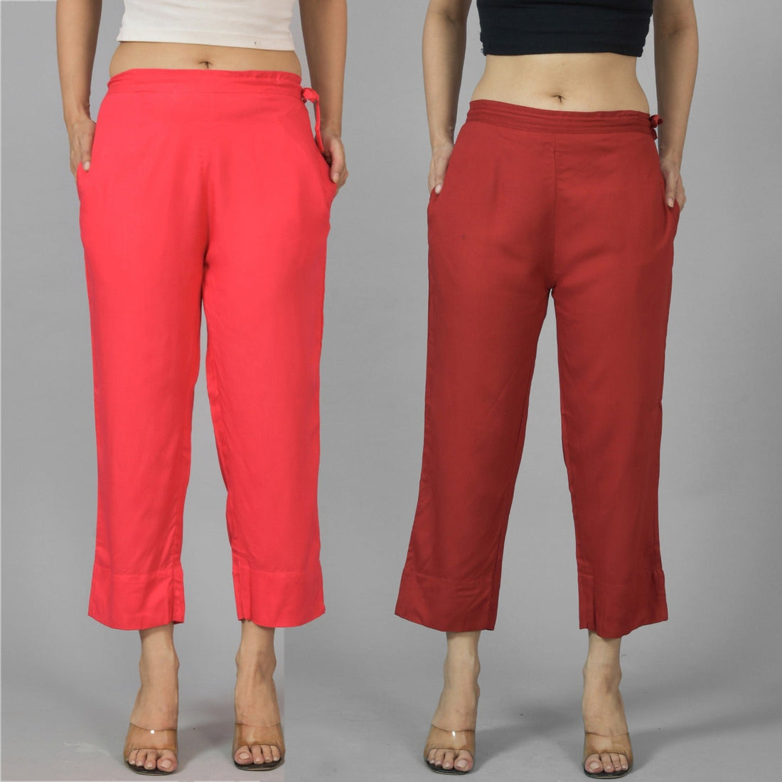 Pack Of 2 Womens Gajri And Maroon Ankle Length Rayon Culottes Trouser Combo