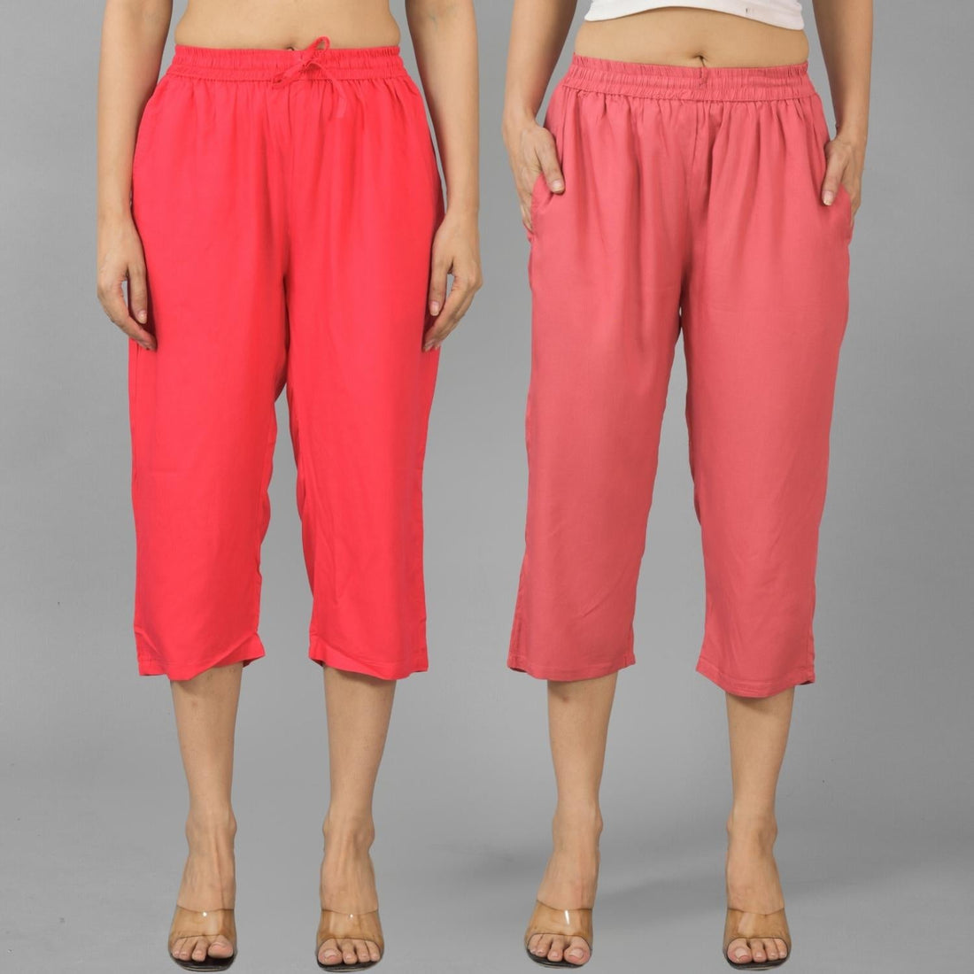 Pack Of 2 Womens Gajri And Mauve Pink Calf Length Rayon Culottes Trouser Combo