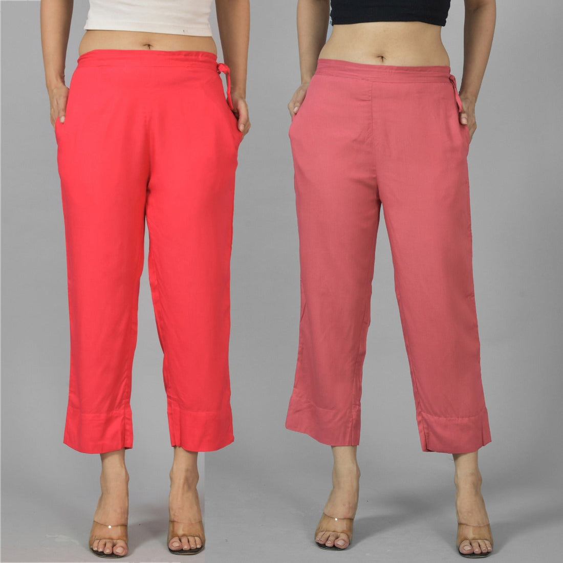 Pack Of 2 Womens Gajri And Mauve Pink Ankle Length Rayon Culottes Trouser Combo