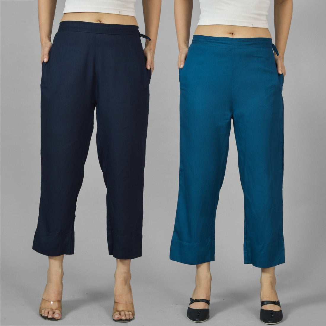 Pack Of 2 Womens Navy Blue And Teal Blue Ankle Length Rayon Culottes Trouser Combo