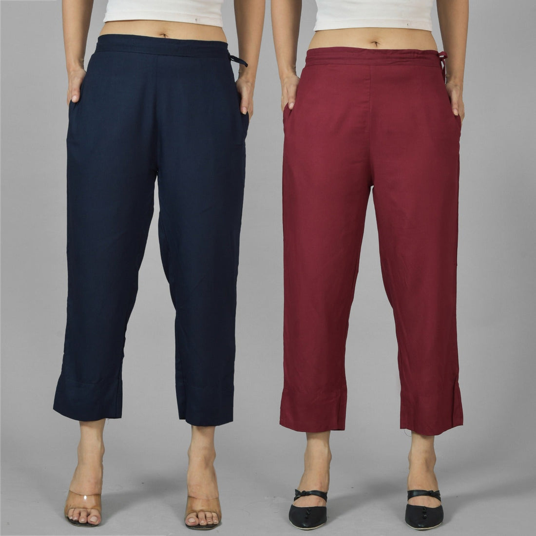 Pack Of 2 Womens Navy Blue And Wine Ankle Length Rayon Culottes Trouser Combo
