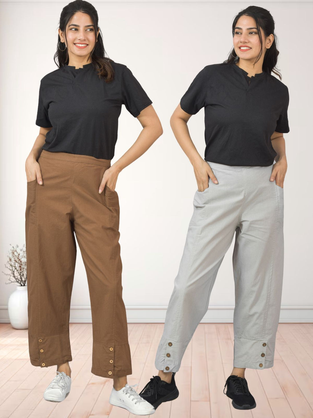 Combo Pack Of Womens Brown And Grey Four Pocket Cotton Cargo Pants