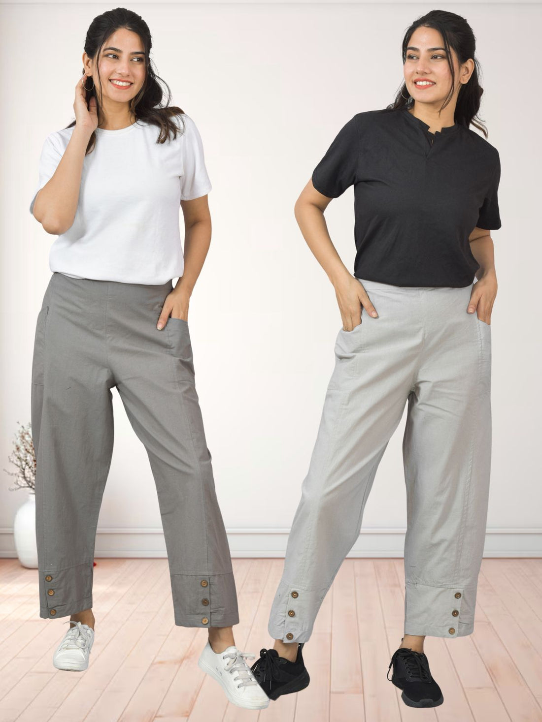 Combo Pack Of Womens Grey And White Four Pocket Cotton Cargo Pants
