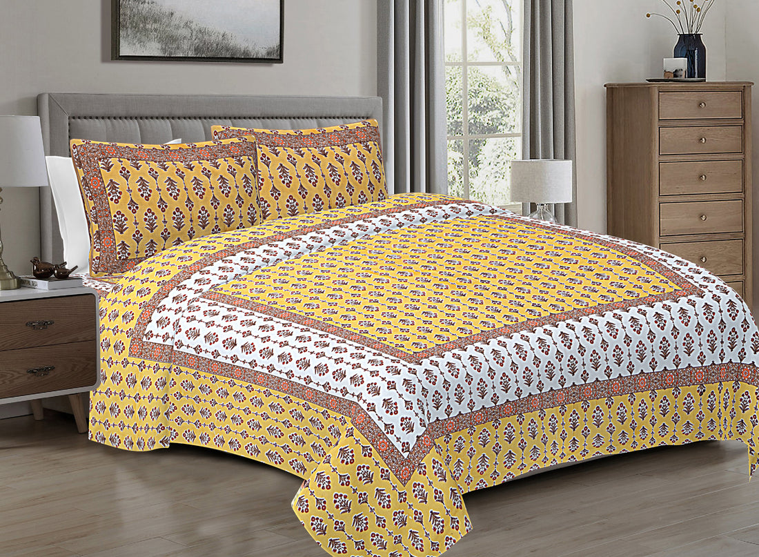 Jaipur Sanganer Print King Size Double Bedsheet,Yellow,1008-4