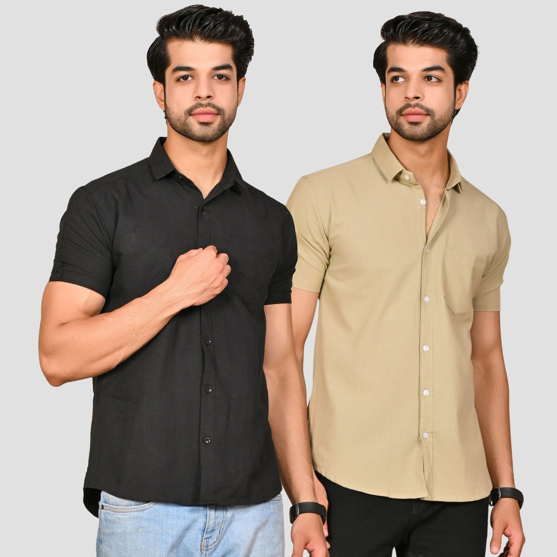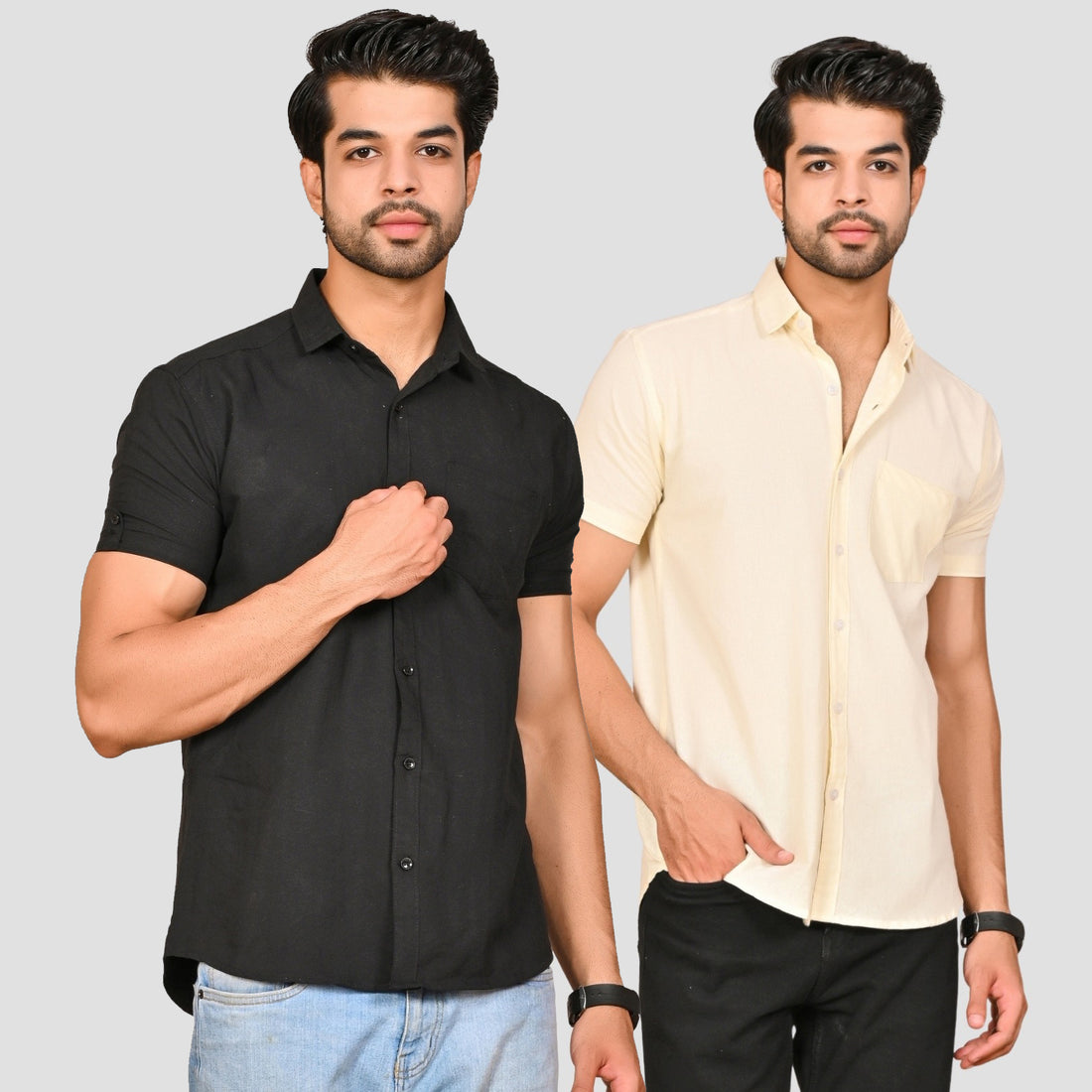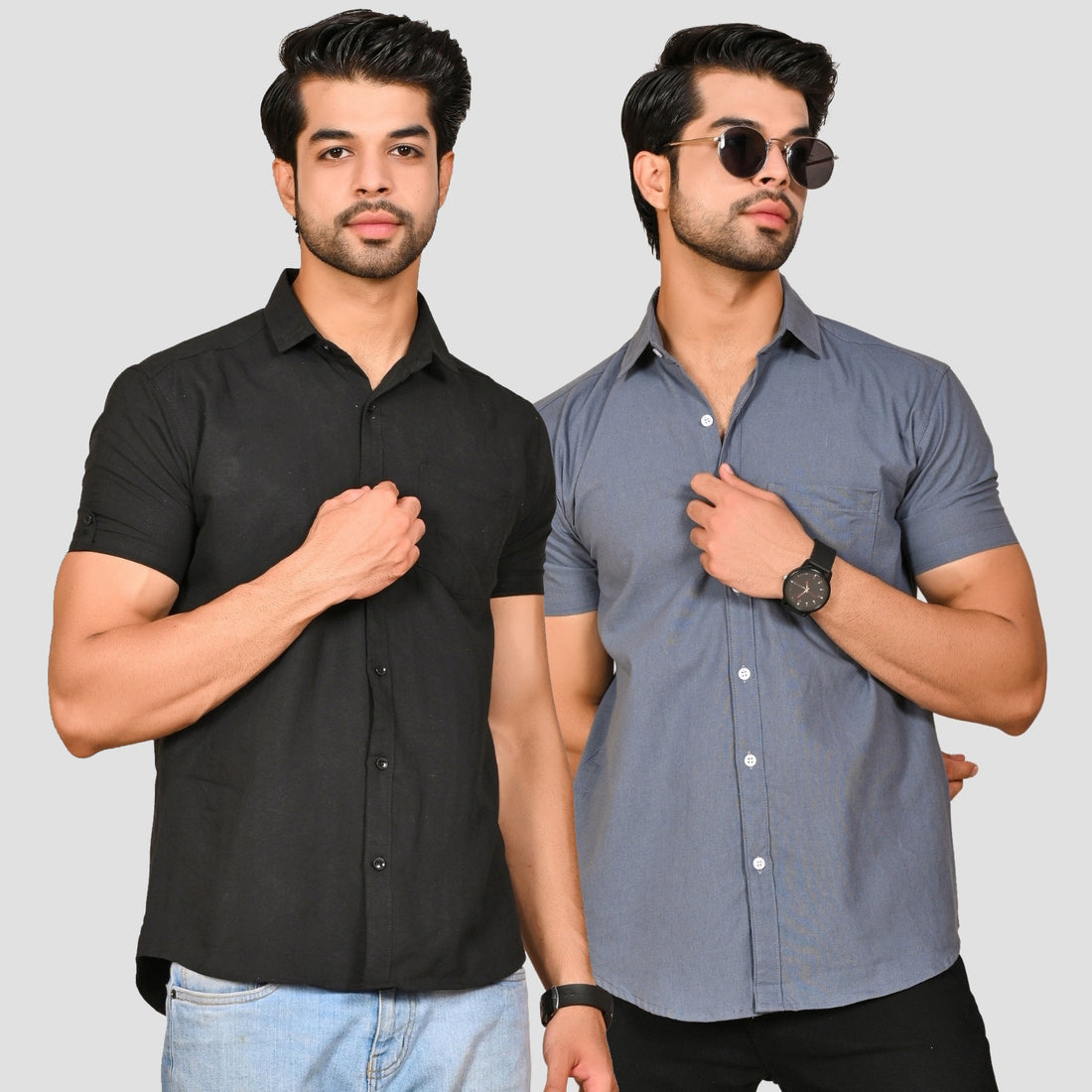 Upgrade your wardrobe with our Pack of 2 Men’s Half Sleeve Linen Shirts, designed for...