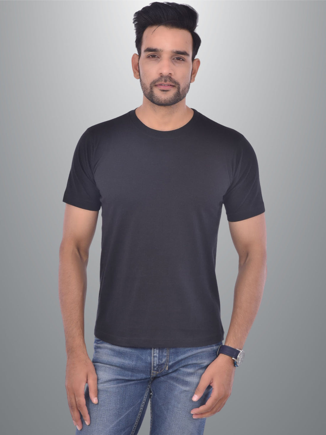 Mens Solid Round Neck Half Sleeve Cotton Blend Black T-shirt