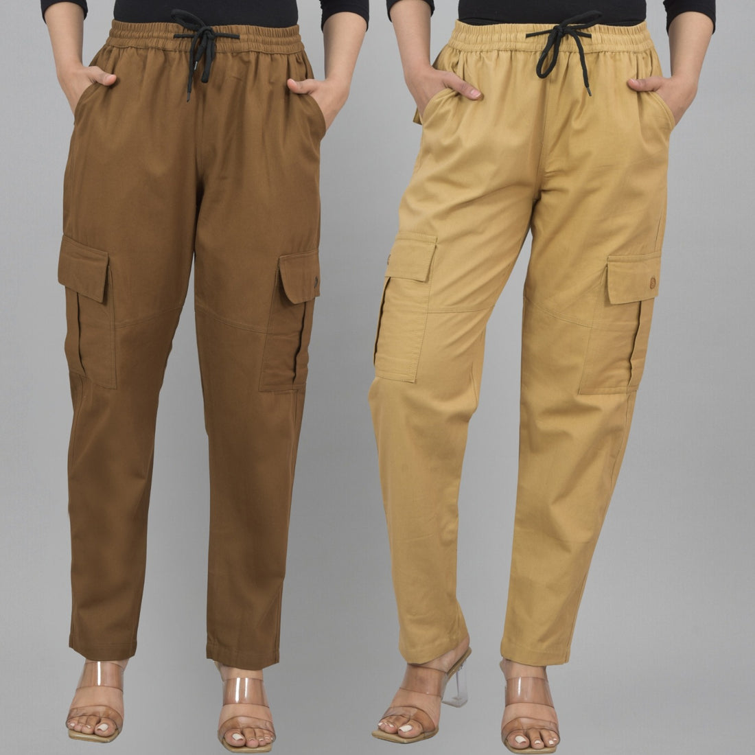 Pack Of 2 Womens Brown And Khaki 5 Pocket Twill Straight Cargo Pants