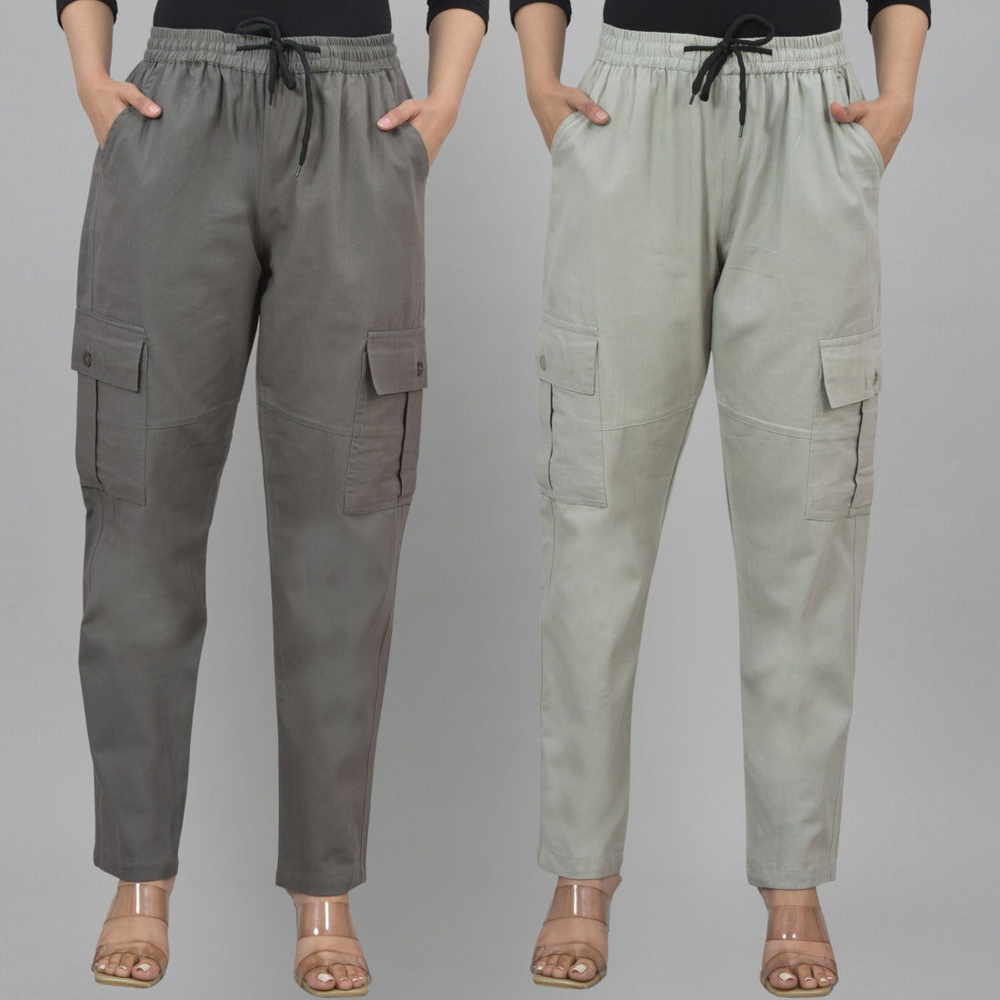 Pack Of 2 Womens Grey And Melange Grey 5 Pocket Twill Straight Cargo Pants