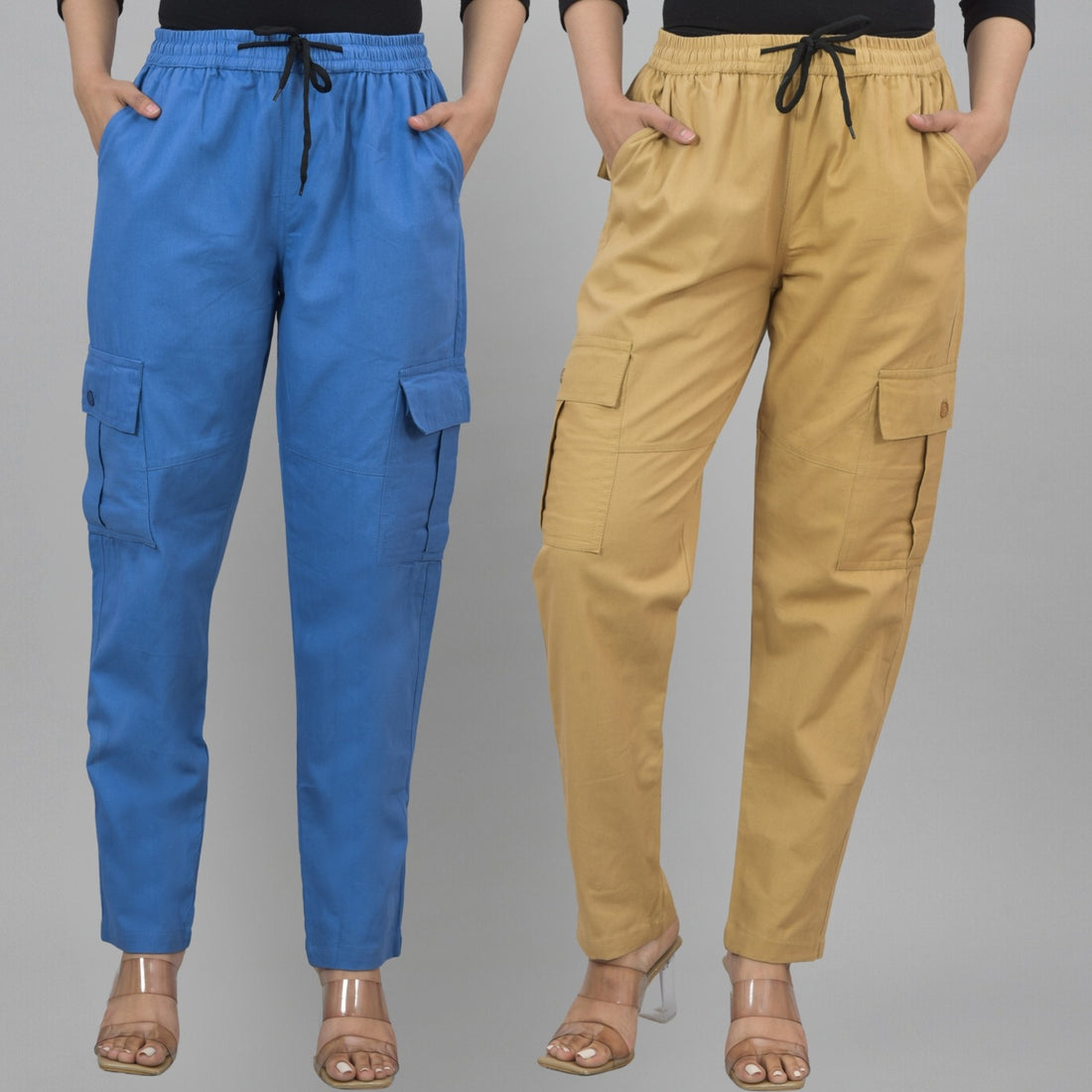 Pack Of 2 Womens Blue And Khaki 5 Pocket Twill Straight Cargo Pants