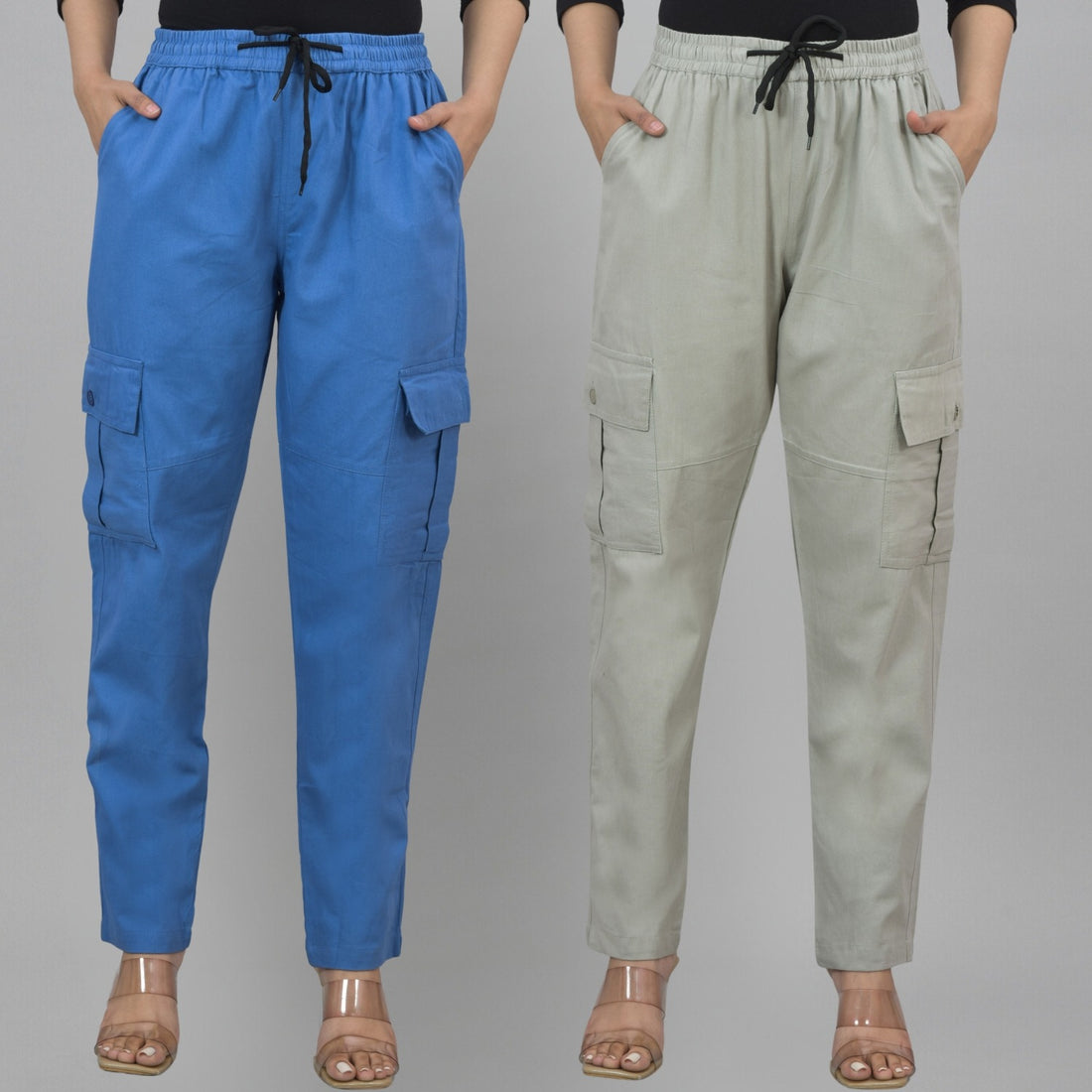Pack Of 2 Womens Blue And Melange Grey 5 Pocket Twill Straight Cargo Pants