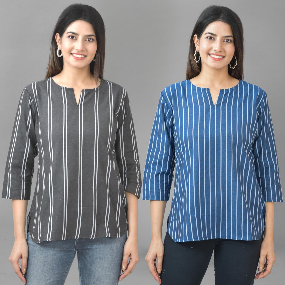 Our Set of Two Striped Cotton Women Tops Combo offers unmatched comfort and style. For stylish...