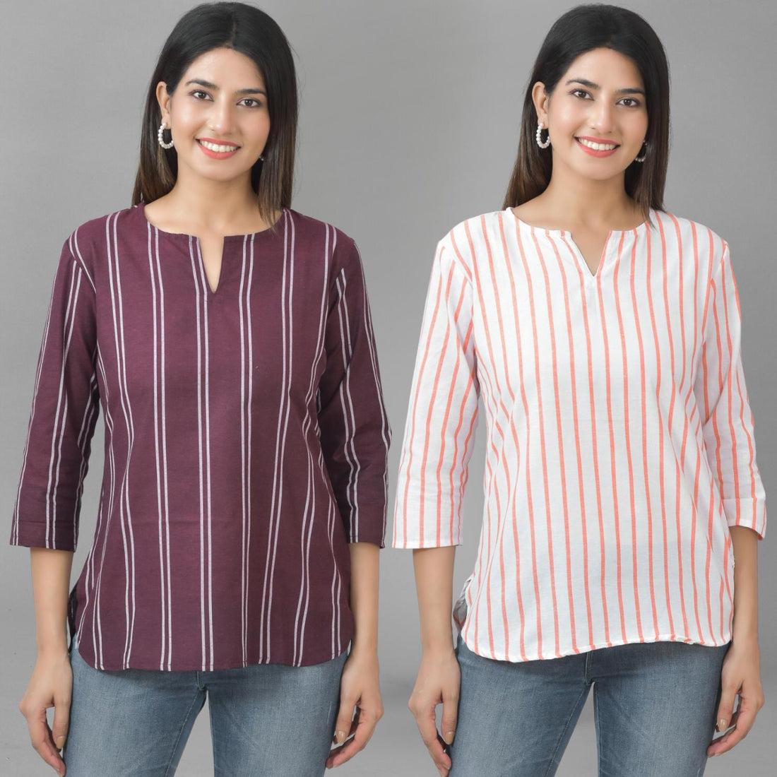 Our Set of Two Striped Cotton Women Tops Combo offers unmatched comfort and style. For stylish...