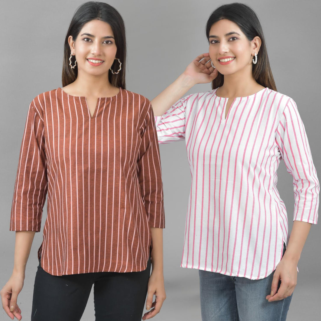 Our Set of Two Striped Cotton Women Tops Combo offers unmatched comfort and style. For stylish...