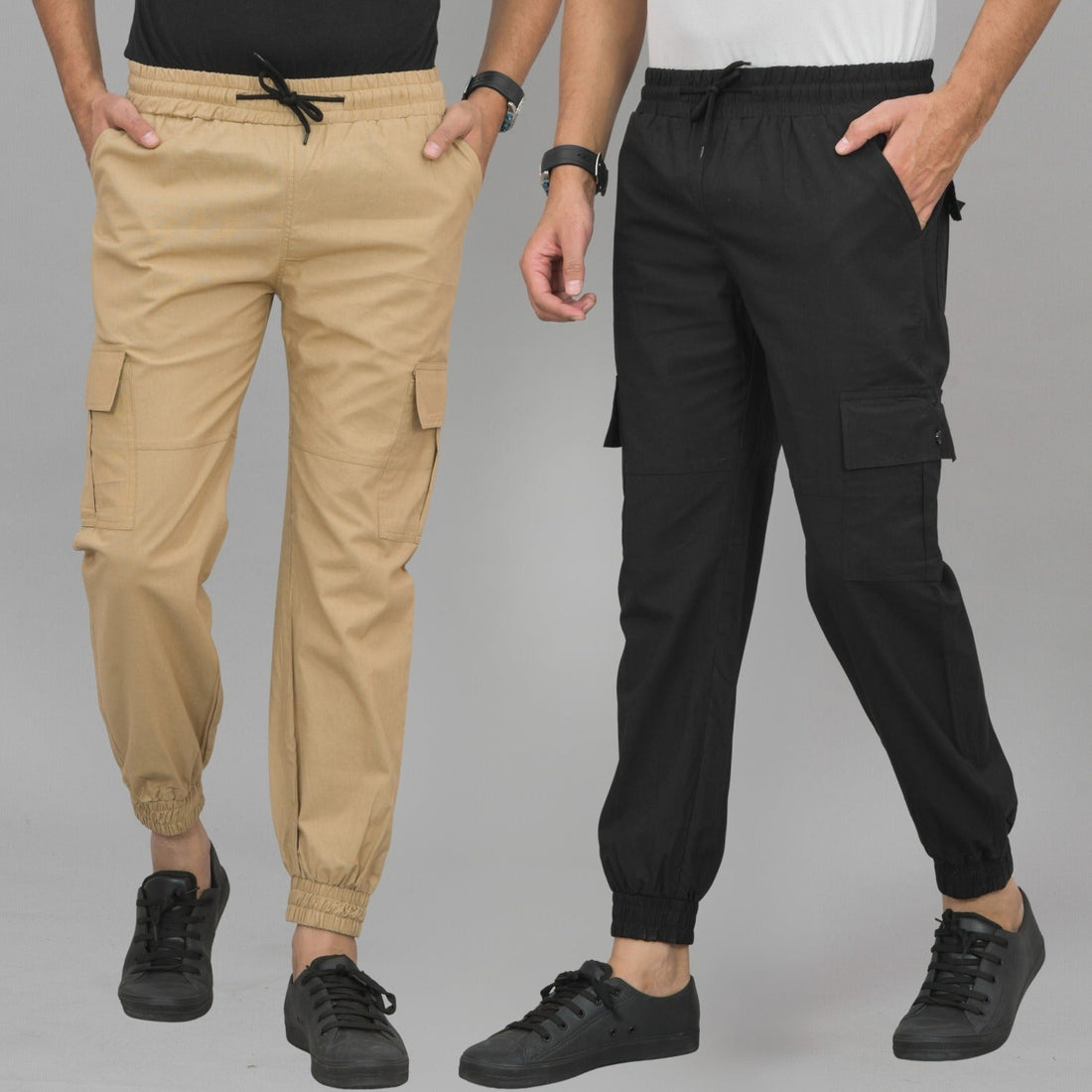 Pack Of 2 Mens Beige And Black Airy Linen Summer Cool Cotton Comfort Joggers