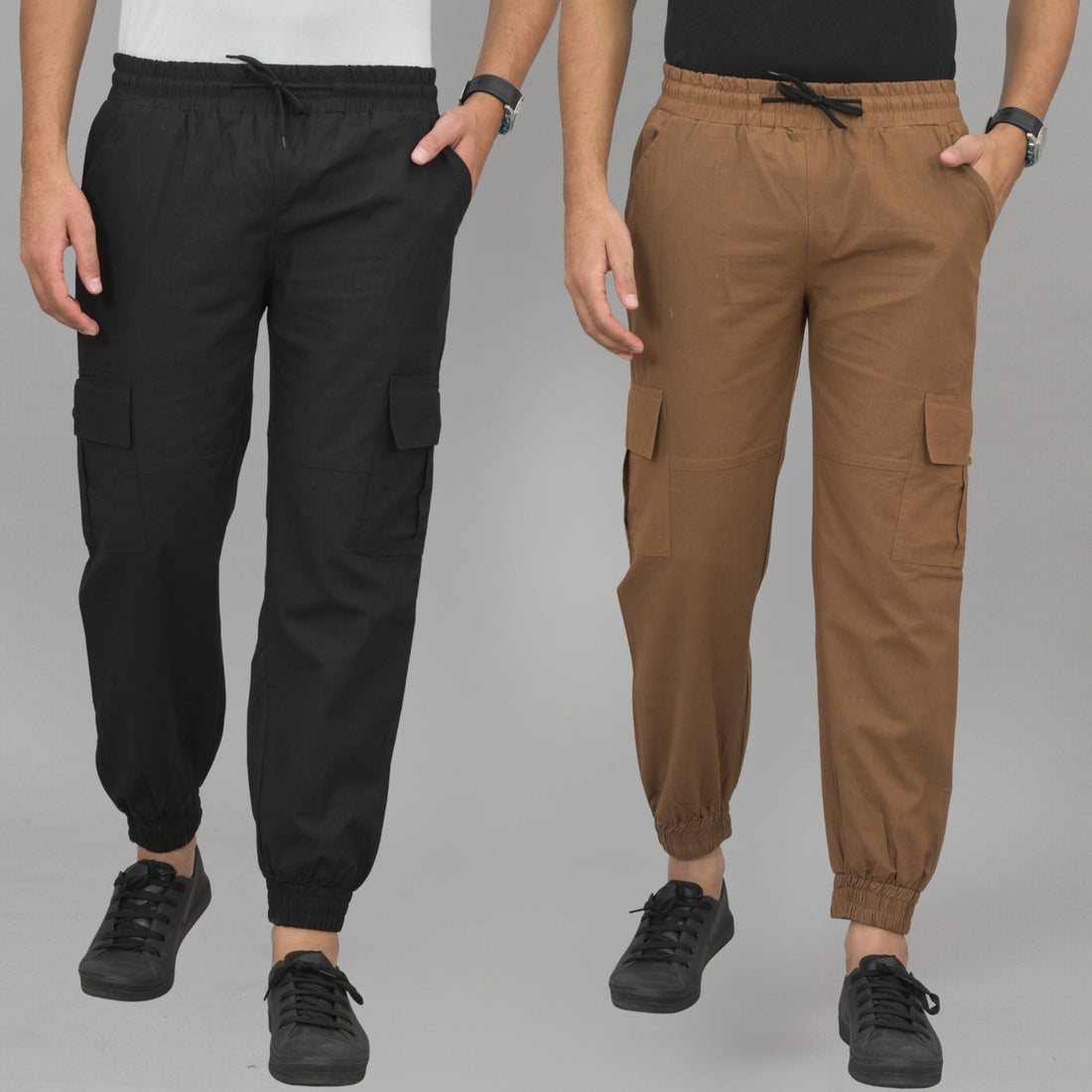 Pack Of 2 Mens Black And Brown Twill Straight Cargo Pants Combo