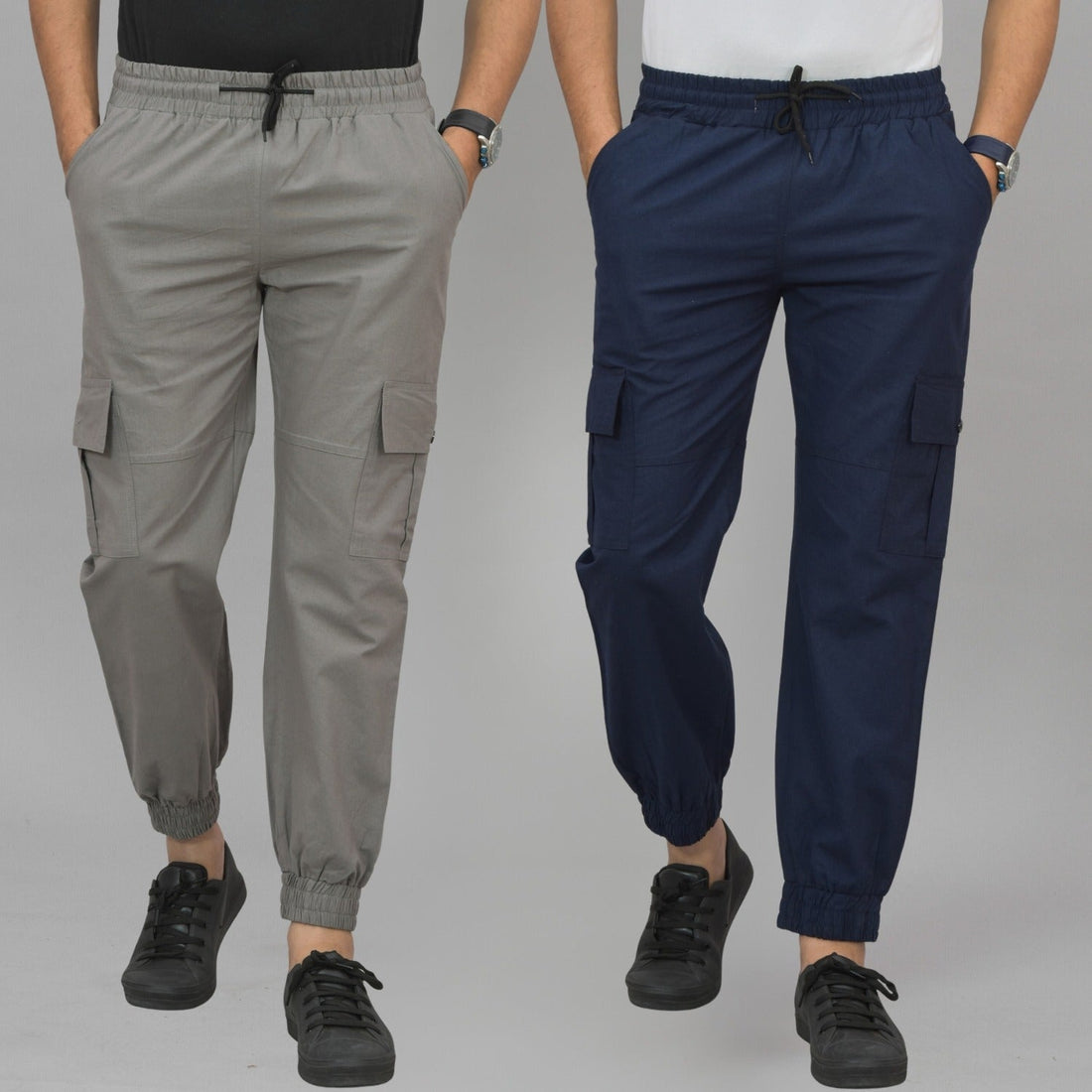 Pack Of 2 Mens Grey And Navy Blue Twill Straight Cargo Pants Combo