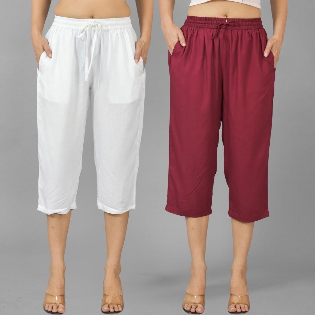 Pack Of 2 Women White And Wine Calf Length Rayon Culottes Trouser Combo