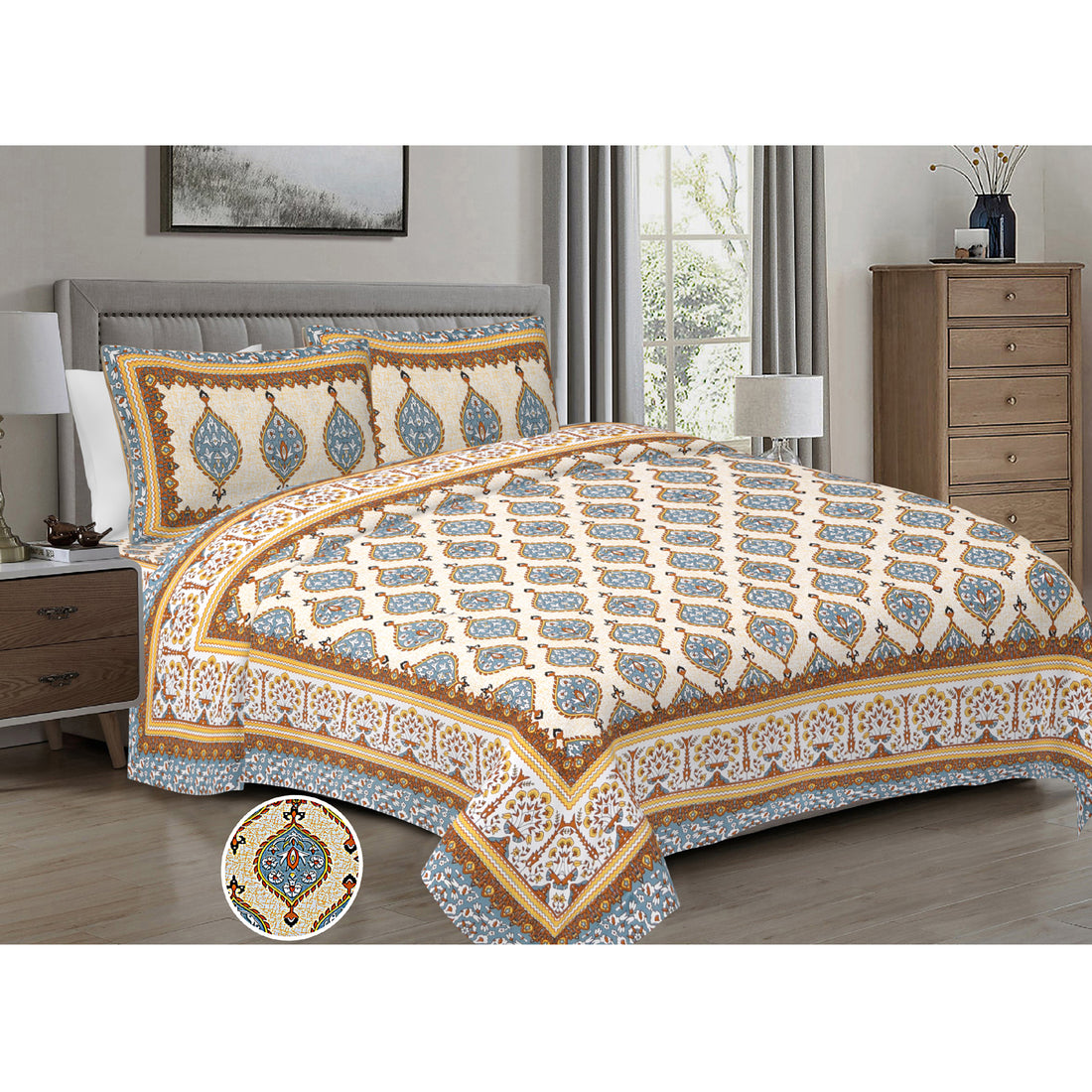 Pure Cotton Jaipur Sanganer Print 100*108 Inch King Size Double Bedsheet ,With 2 Pillow Covers,Yellow-1001-1