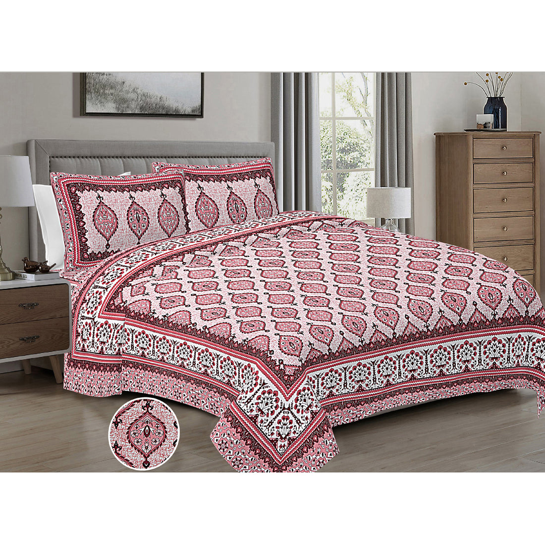 Pure Cotton Jaipur Sanganer Print 100*108 Inch King Size Double Bedsheet ,With 2 Pillow Covers,Red-1001-2