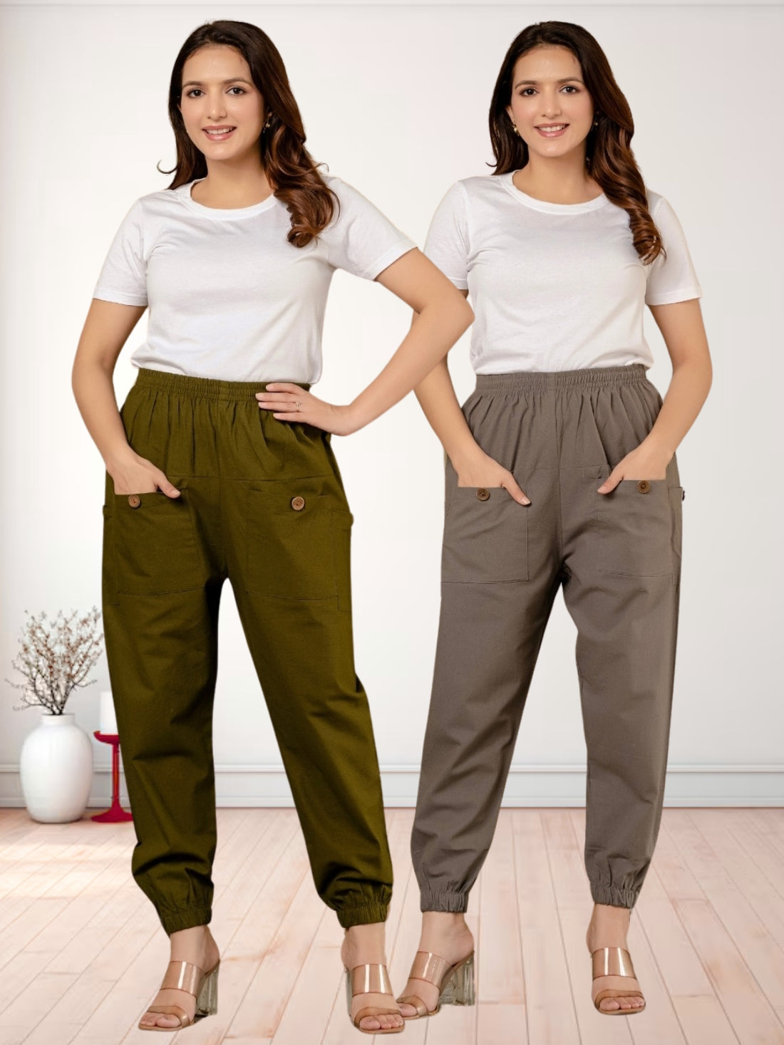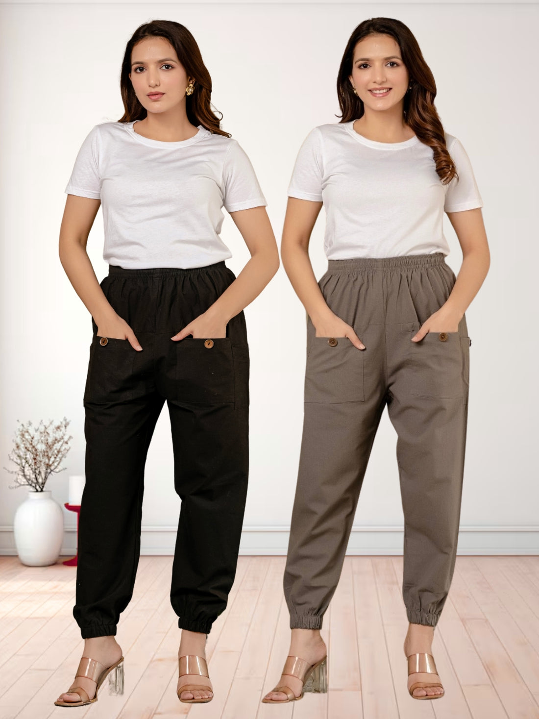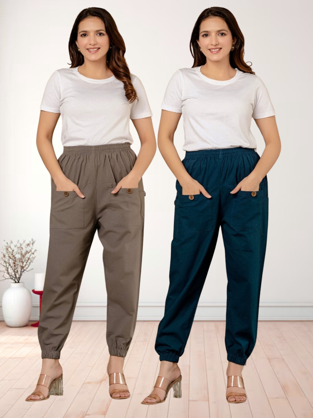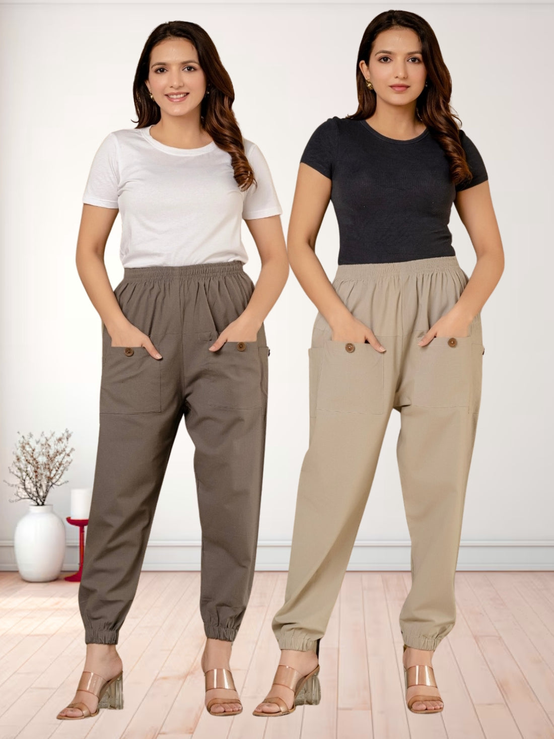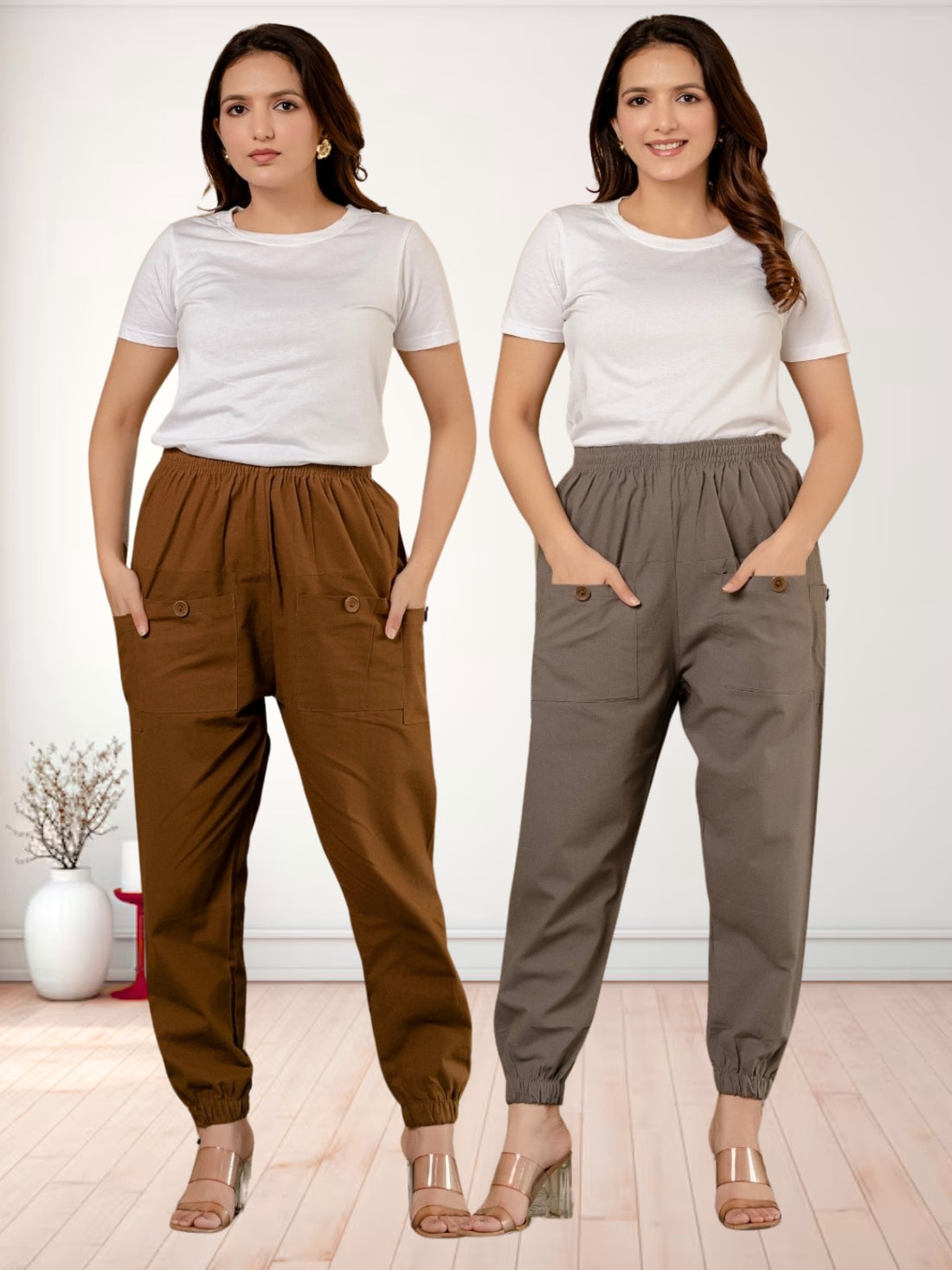 Combo Pack Of Womens Brown And Grey Four Pocket Cotton Cargo Pants
