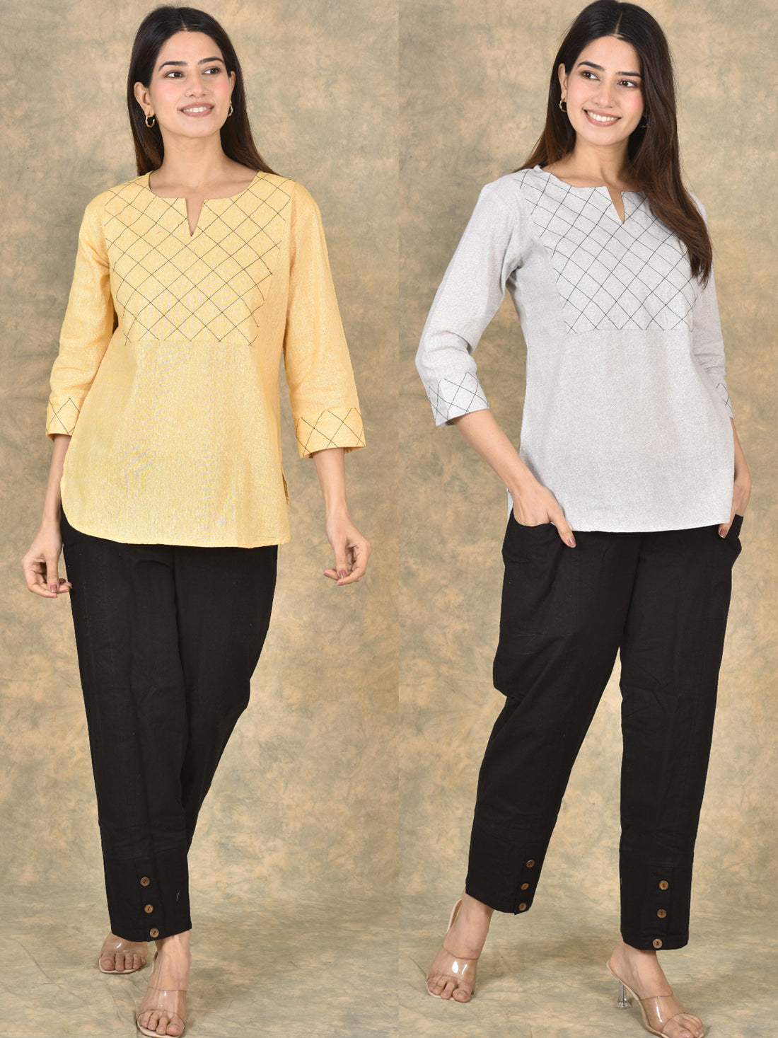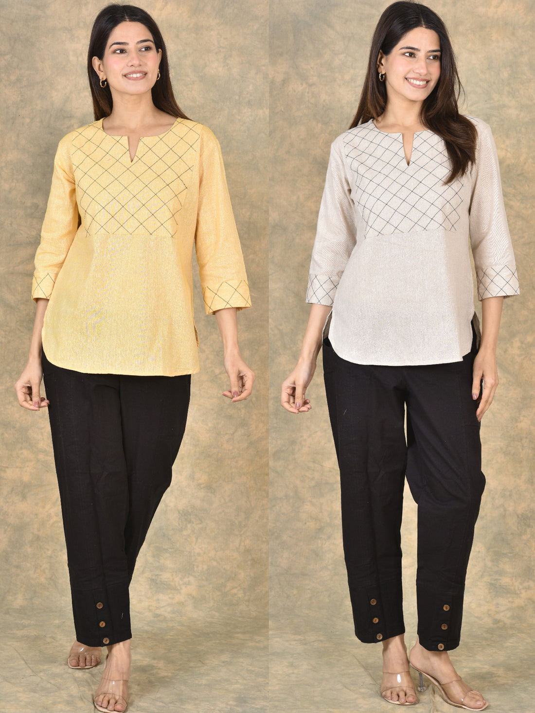 Handloom Cotton Yoke Top Combo Pack of 2 – Beige & Melange