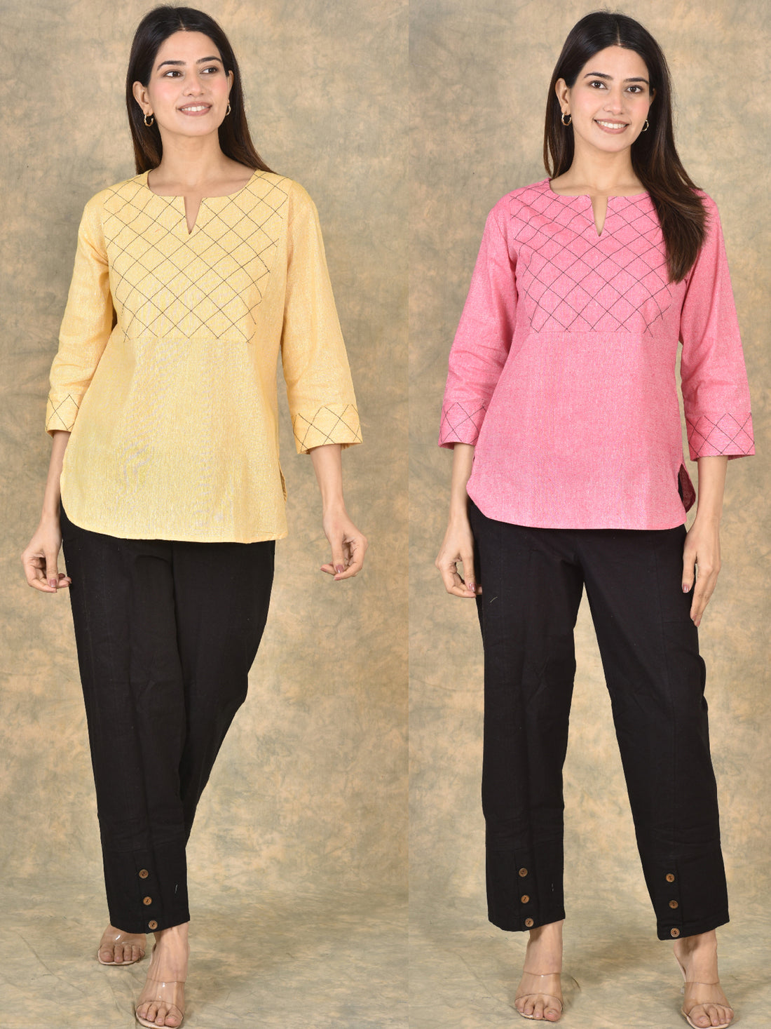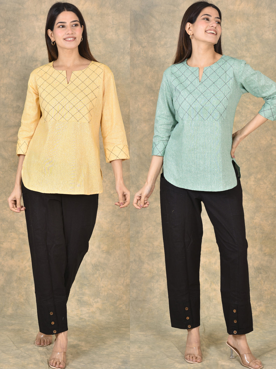 Handloom Cotton Yoke Top Combo Pack of 2 – Beige & Mustard