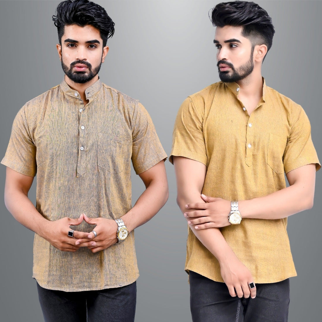 Mens Regular Fit Brown and Mustard Half Sleeve Cotton Short Kurta Combo