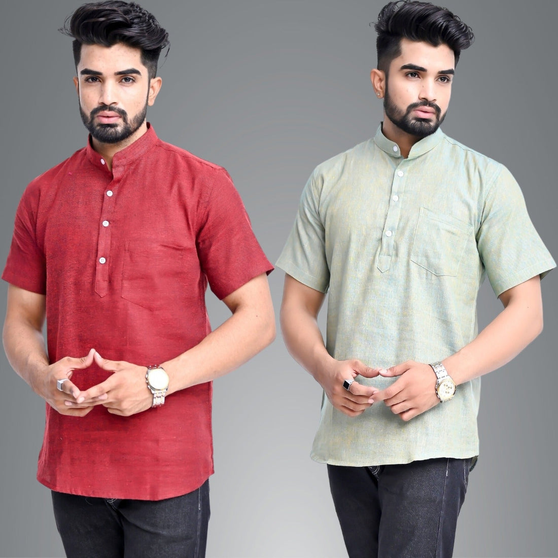 Mens Regular Fit Brown and Maroon Half Sleeve Cotton Short Kurta Combo