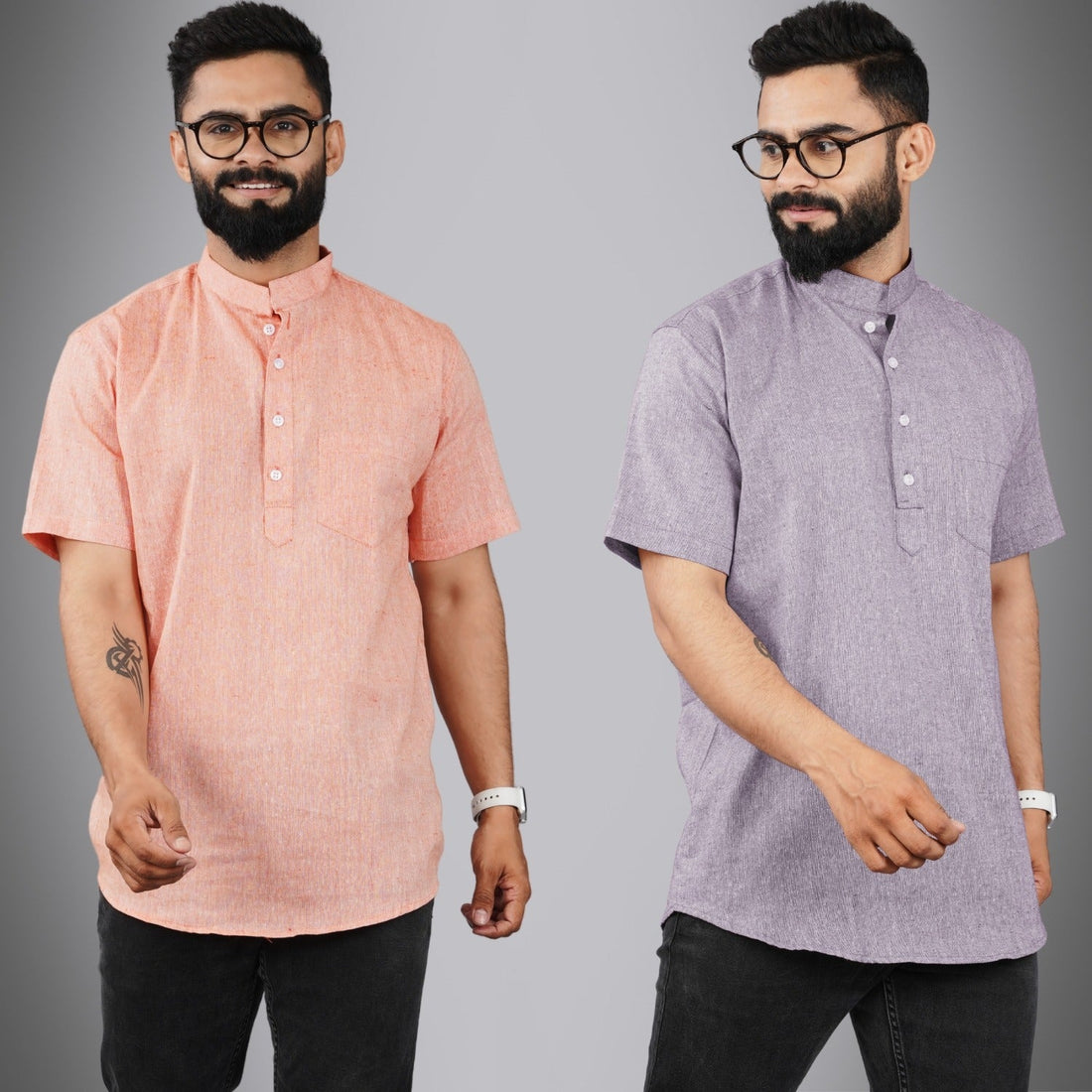 Pack Of 2 Mens Regular Fit Orange And Purple Half Sleeve Cotton Short Kurta Combo