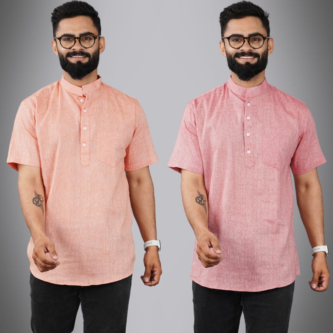 Pack Of 2 Mens Regular Fit Orange And Pink Half Sleeve Cotton Short Kurta Combo