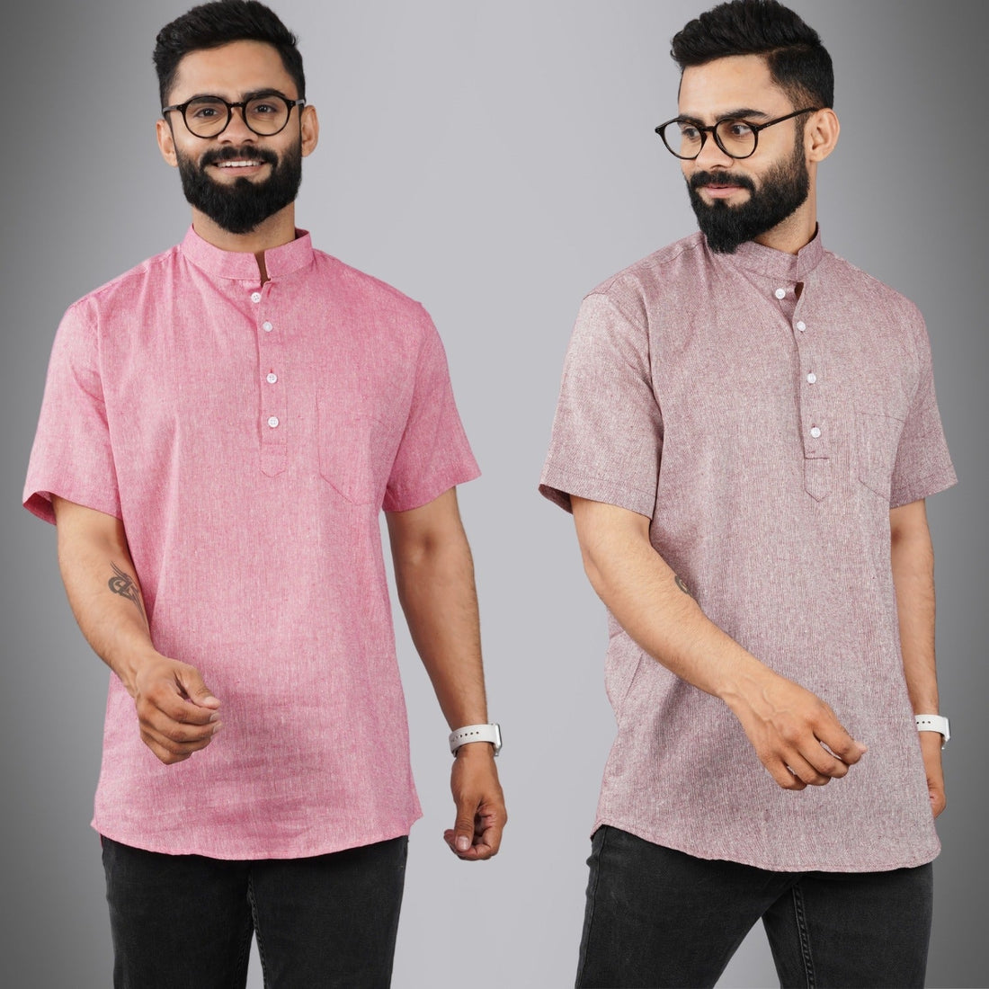 Pack Of 2 Mens Regular Fit Pink And Magenta Half Sleeve Cotton Short Kurta Combo