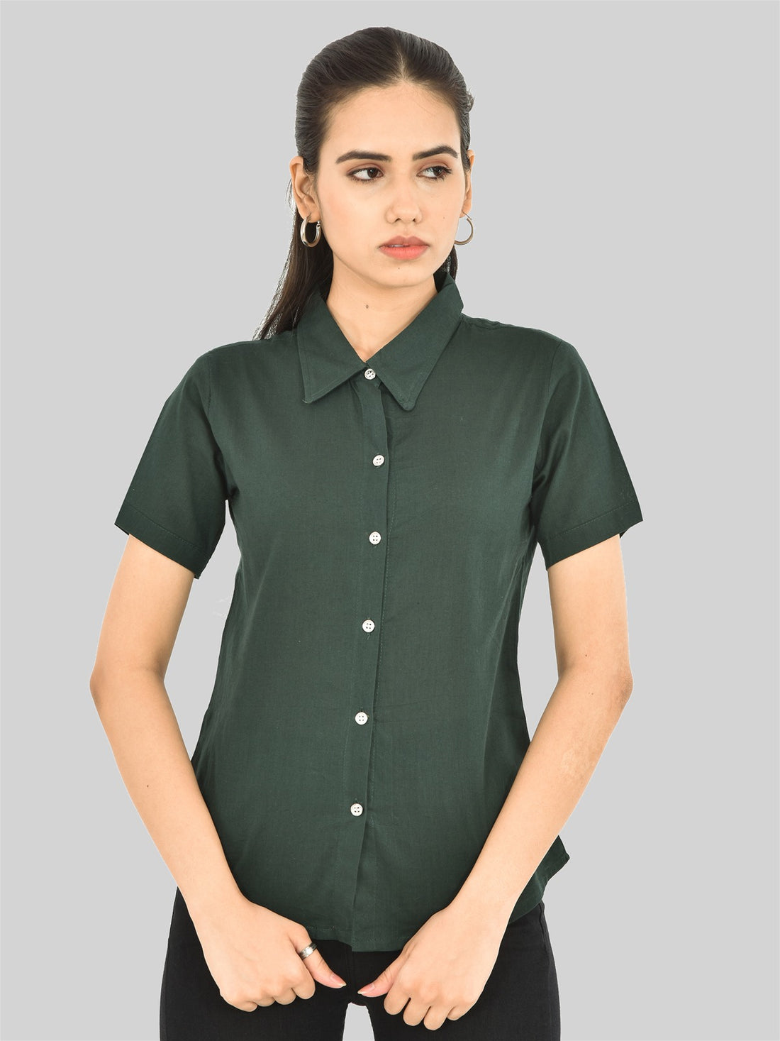 Womens Regular Fit Bottle Green Half Sleeve Cotton Shirt