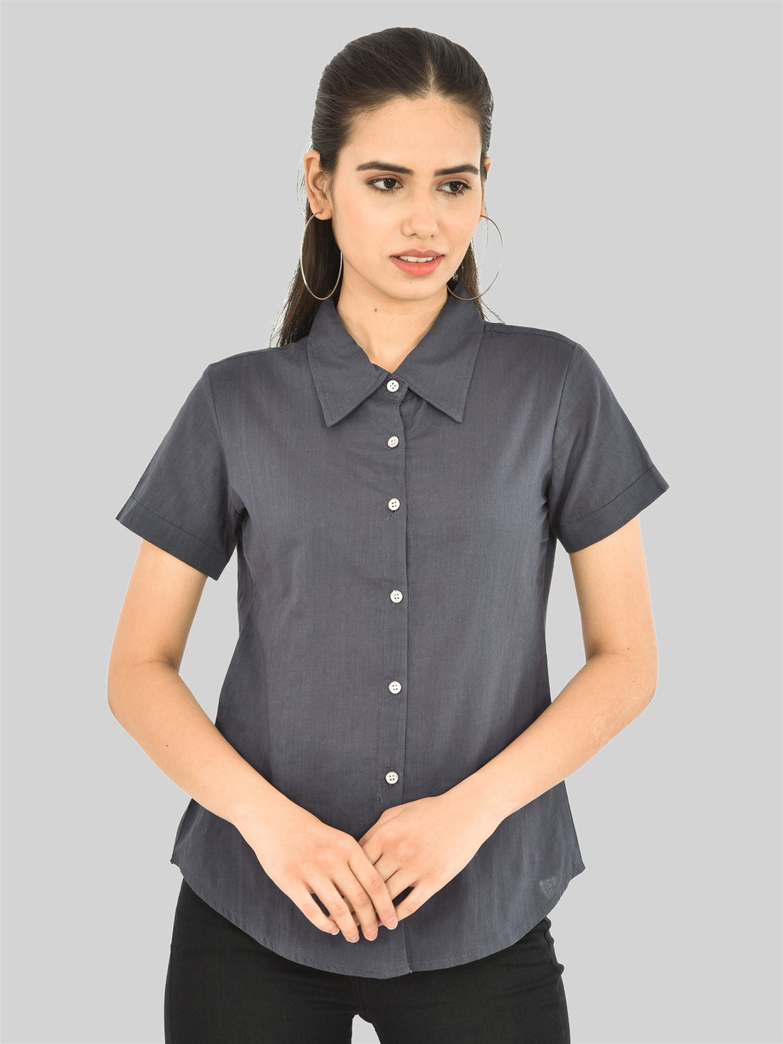 Womens Regular Fit Grey Half Sleeve Cotton Shirt
