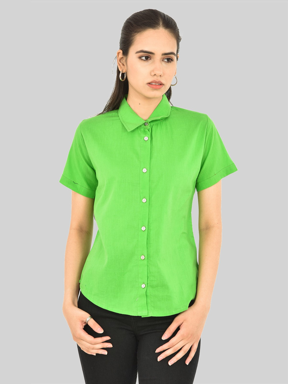 Womens Regular Fit Pista Green Half Sleeve Cotton Shirt