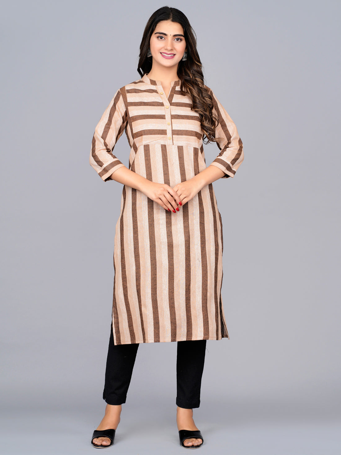 Womens Brown Khadi Cotton Multistripe Straight Kurti