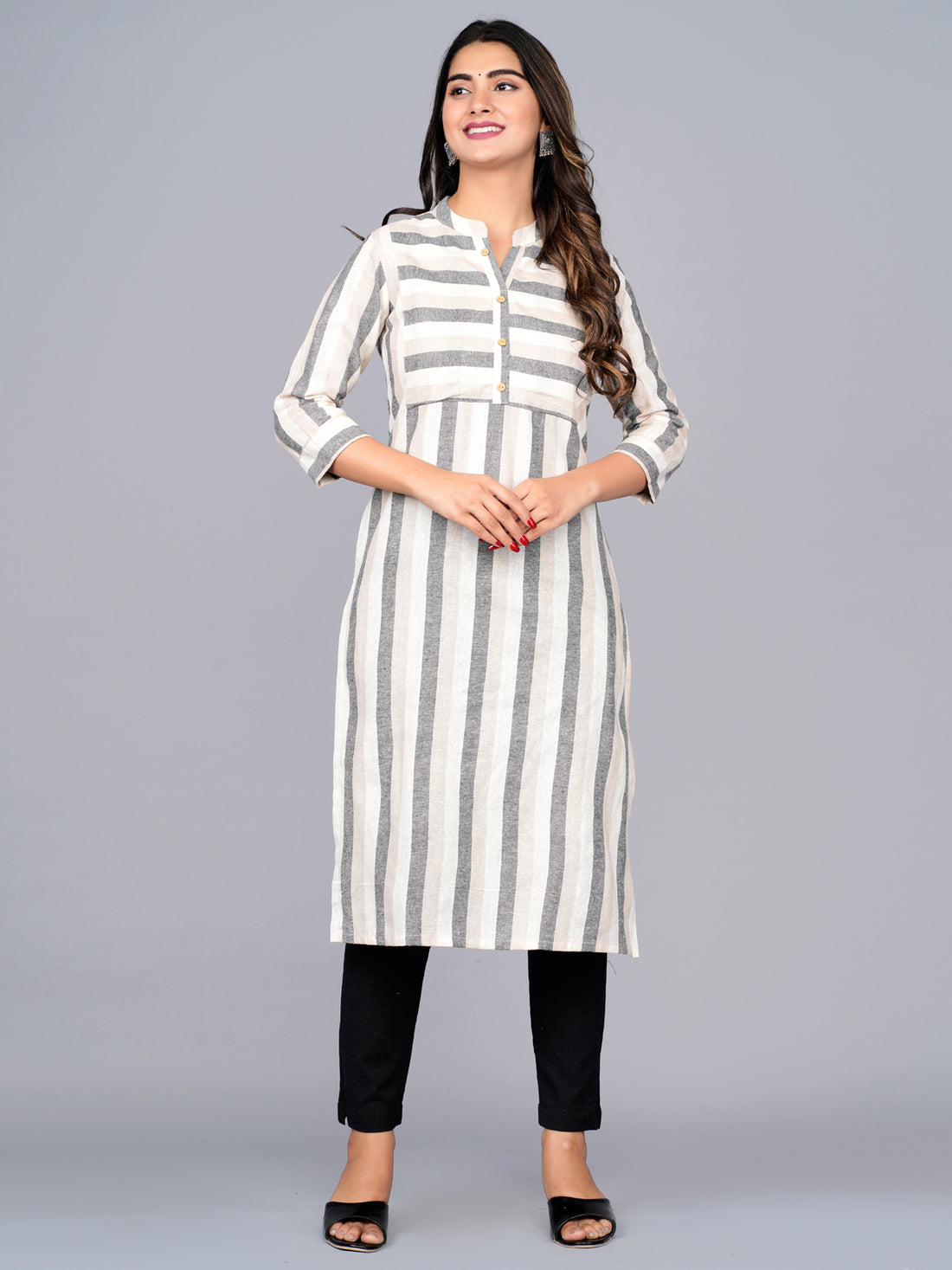 This Stylish Women Striped Khadi Cotton Straight Kurti By Quaclo, Can help you upgrade your...