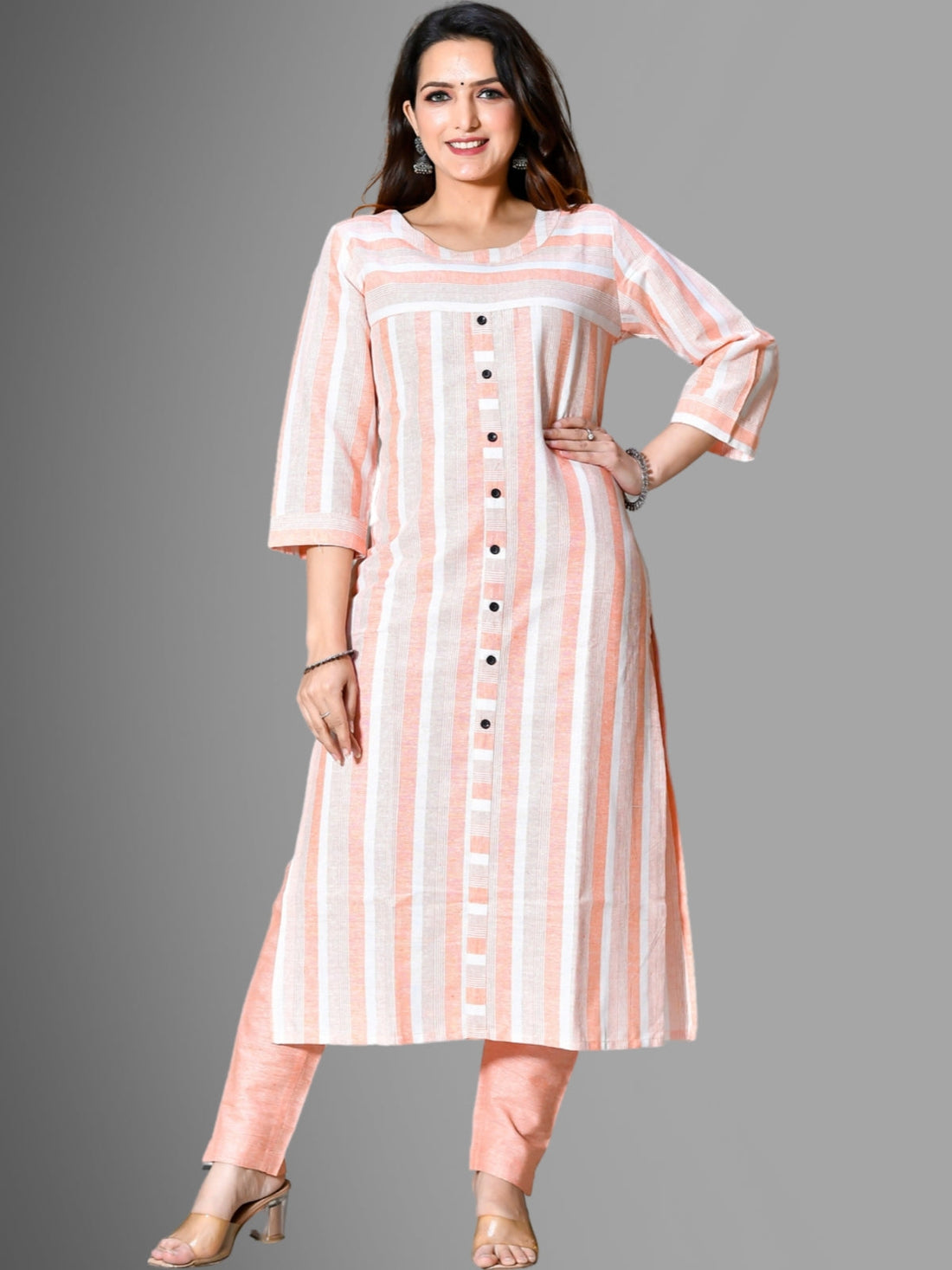 With our women's cotton stripe straight kurta, which is designed for comfort and style, you...