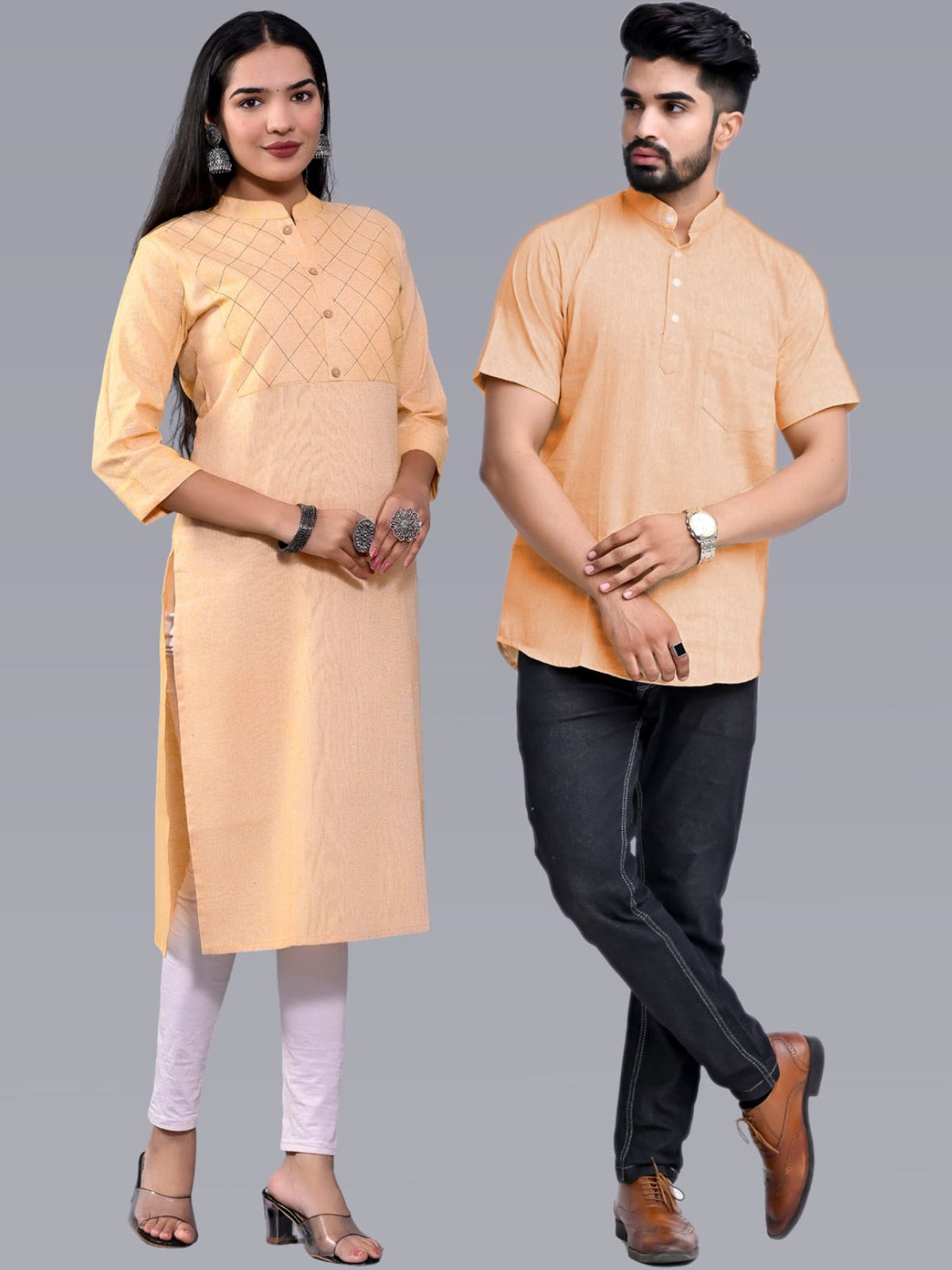 Ethnic Wear South Cotton Beige Couple Kurta Set
