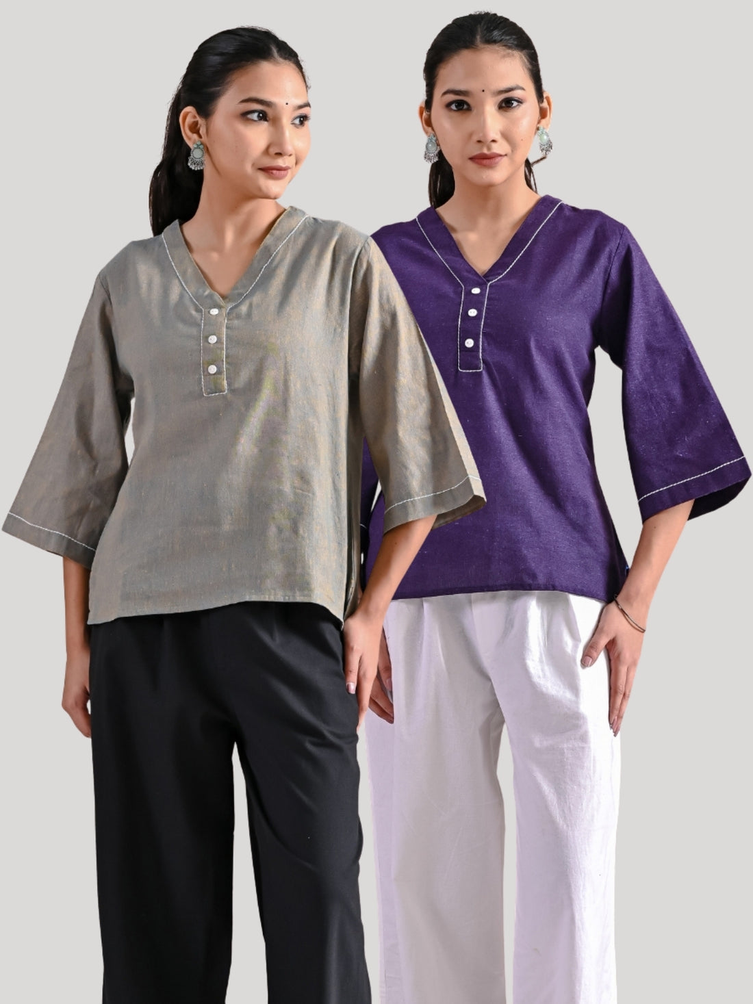 Pack Of 2 Purple And Teal Blue Handloom Cotton Anchor Thread Designer Tops